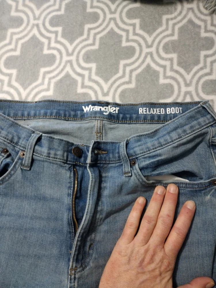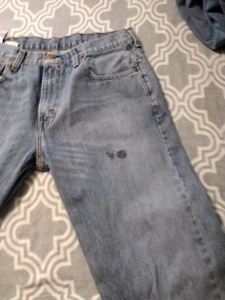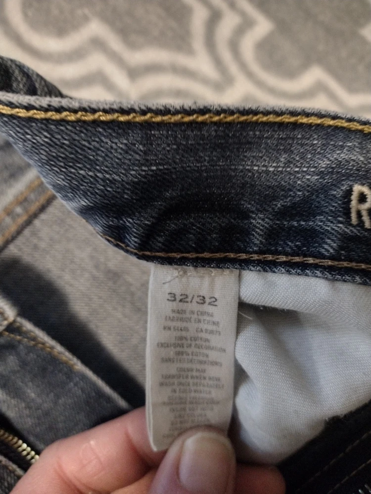 Wrangler Relaxed Fit Boot Cut 32 x 32 American Eagle Relaxed Fit 32 x 32 Levi Strauss 569 32 x 34 Pair has ink stain on outer leg. See pics