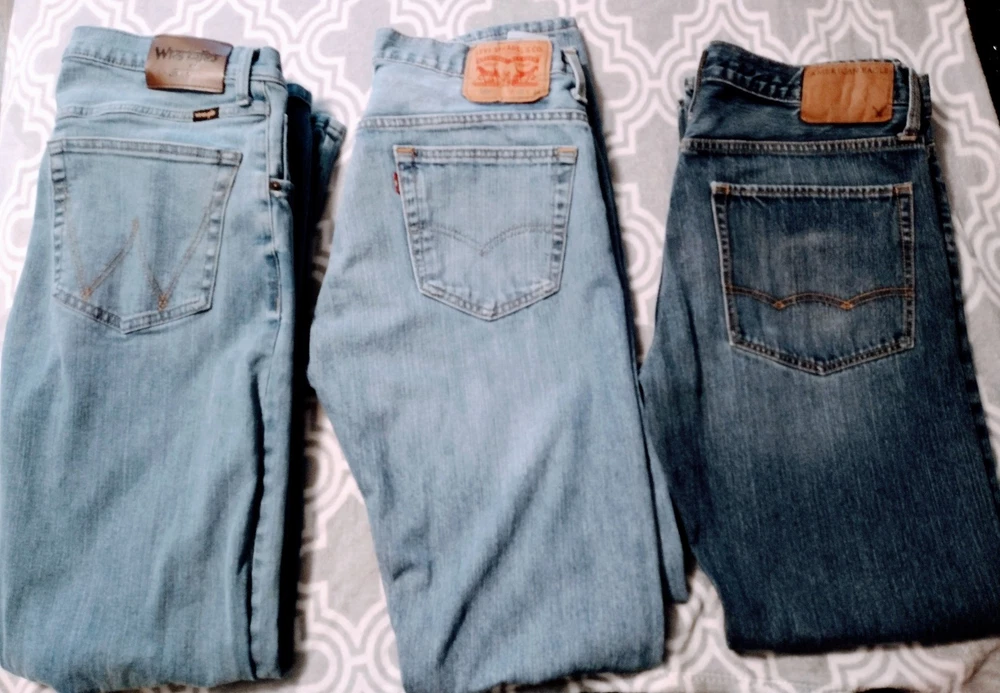 Men's Blue Jeans Size 32 Mixed Lot (3) Pair Levi's -Wrangler-American Eagle-