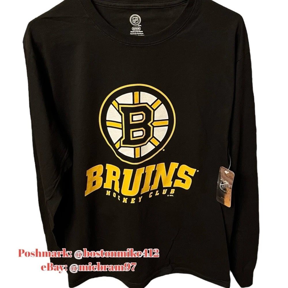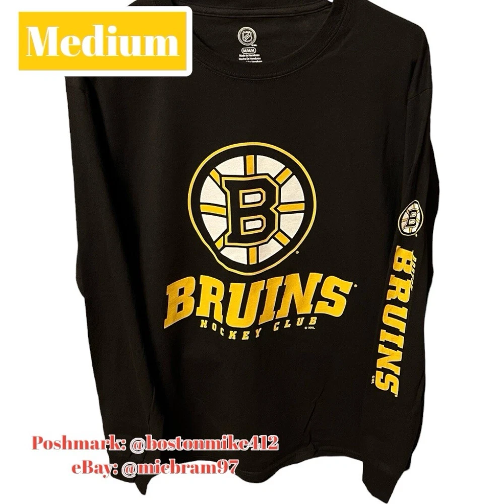-COPY- Size MEDIUM (LAST ONE REMAINING- Sz Large now sold out! Item may be posted across multiple categories & on multiple platforms.) ⚡️Fast Shipping/Handling⚡️ Ships NEXT BUSINESS Day (Monday-Friday Only). *🏆LIMITED TIME PROMO🥇*: +THIS ITEM is $18 when purchased with any Boston Bruins SWEATSHIRT or Boston Celtics SWEATSHIRT. See individual listings for available sizes.+ *(Items must be purchased together in the SAME TRANSACTION. While supplies last!).* Size MEDIUM (LAST ONE REMAINING- Sz Large now sold out!) 100% Cotton Made in Honduras Show off your love for the Boston Bruins with this Black NHL long sleeve shirt! The shirt features the team's iconic Spoked B logo prominently displayed on the front, with black, white, and yellow, colors that really pop. Perfect for the regular season or postseason, this shirt is made for fans who want to represent their team in style. Crafted from 100% cotton materials, this shirt is both comfortable and durable. It's available in size MEDIUM and is perfect for any hockey fan looking for a stylish way to support their favorite Original 6 team. Add this shirt to your collection today and show your love for the Bruins and their quest for the Cup. *See other listings for more NWT Bruins merchandise including NHL Bruins ‘47 Brand Hat/ Baseball Cap, Mens NHL Bruins Hoodies (MD & LG), and Mens NHL Bruins Crew/ Crewneck Sweatshirts (LG & XL). Also available are NBA Boston Celtics items such as T-Shirts & Hoodies in multiple sizes.* *Slight variances in color are possible due to differences in phone/computer screen types.* Item list price includes STANDARD Shipping. Expedited Shipping available at checkout for an additional charge.