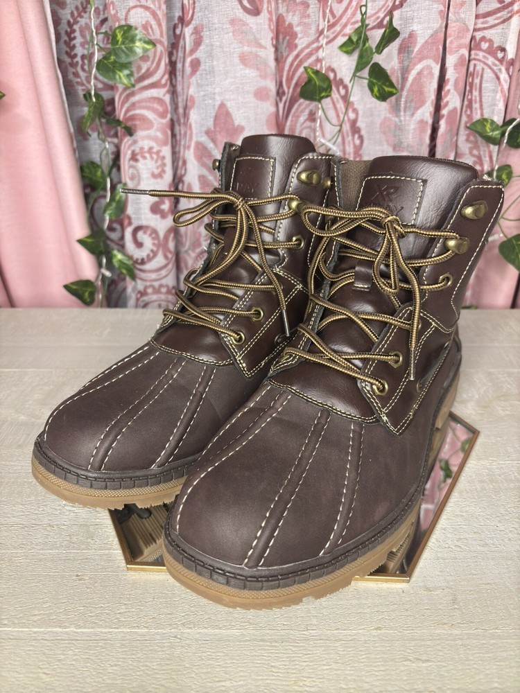 XRAY Men's Blythe Lace-Up Boots- US Size 11 Shoe width - medium Heel height - 2" Shaft height - 6.5" Shaft circumference - 13" Round toe Lug sole Upper - 100% Polyurethane, Outsole - 100% Thermoplastic Rubber, Lining - 100% Textile