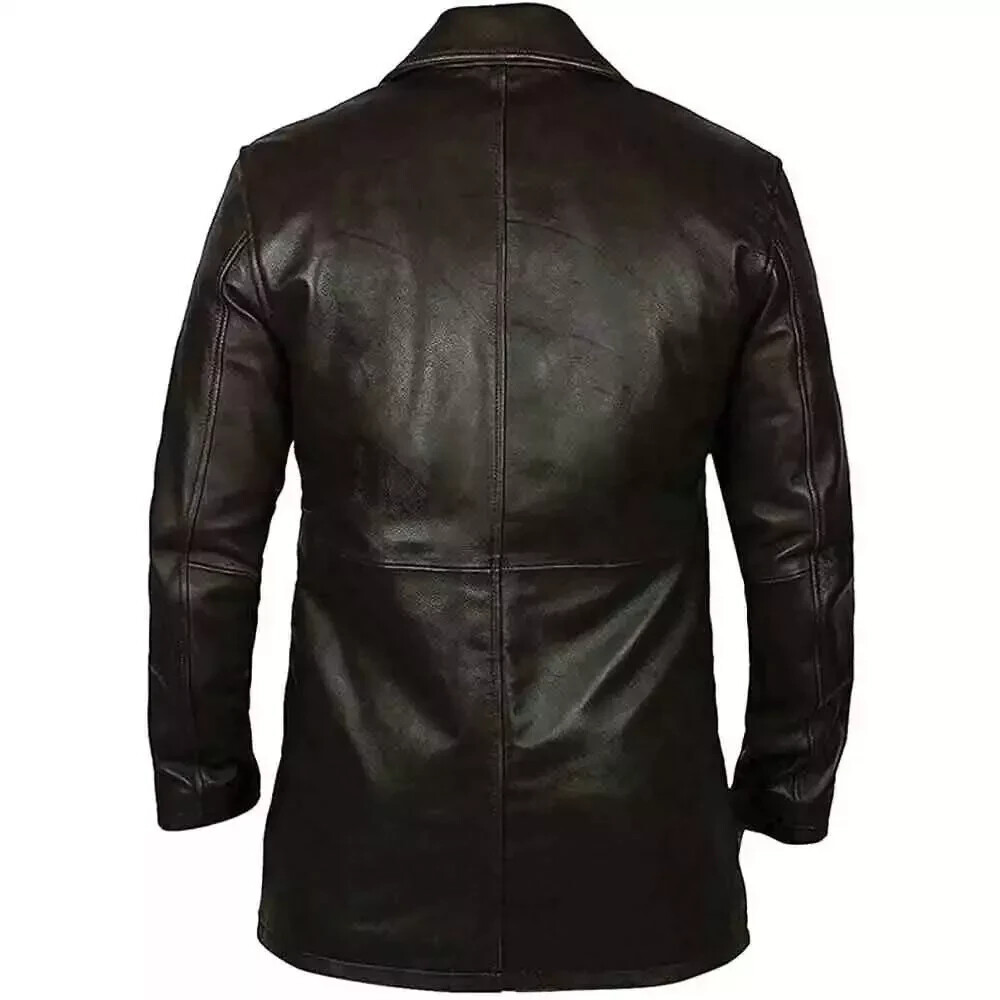 Men's Classic Black Genuine Leather Military Peacoat Jacket with Royal Buttons