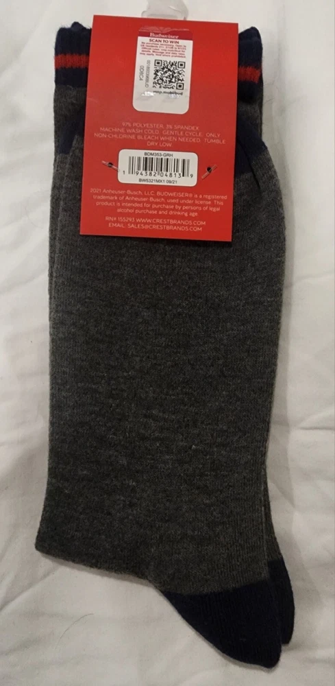 Mens Budweiser Socks Licensed 10-13 Gift 1 Pair King Of Beers Casual