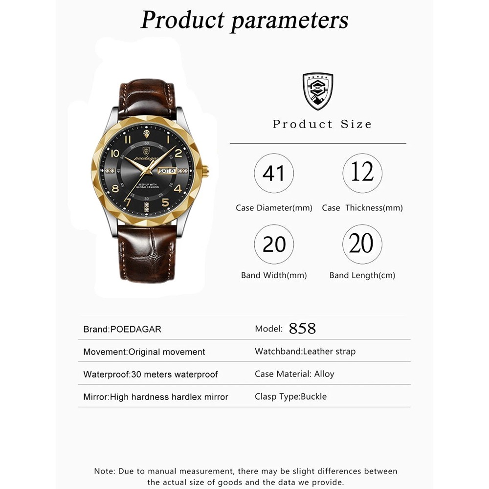 Product Description Product Introduction ✅ Premium Stainless Steel Construction Crafted from solid stainless steel with a substantial feel and refined finish. The weight and detail convey durability and understated elegance. ✅ Accurate Japanese Quartz Movement Powered by a reliable imported Japanese quartz movement for precise timekeeping—a trusted companion for daily wear and punctuality. ✅ Luminous Hands for Night Visibility High-definition luminous hands ensure easy reading in low light, blending practical functionality with clean, classic design. ✅ Scratch-Resistant Mineral Crystal Glass Features a mineral crystal face with enhanced coating for clarity, durability, and everyday scratch resistance. ✅ 30M Water Resistance Suitable for hand washing, light rain, and daily moisture. Not recommended for swimming, showering, or submersion. Specifications Case diameter: Approx. 41mm Thickness: Approx. 12mm Strap dimensions: Length: Approx. 20cm: Width: Approx. 2.0 cm Dial Material: Stainless steel hands, premium mineral glass crystal Case Material: Stainless steel Strap Material: Genuine leather Style: Fashion, Luxury, Military, Business, Casual Function Description: 12-hour display, Luminescent, Date display Water Resistance: 30 meters (Suitable for hand washing, not for swimming or bathing) Package Contents: 1x Watch Payment Returns Contact Us Shipping Feedback 1. We only accept eBay payments. 2. All payments must be made within 3 days after auction won. Item may be returned for refund or replacement within 30 days of the purchase date. Returned merchandise must be unused, in original packaging and include all accessories. Shipping costs are non-refundable. Please do not hesitate to leave us your 5 Star ★★★★★ of DSR positive feedback if you are satisfaction with our products ,delivery or services . If you have Any Questions Or Unsatisfied with your purchase, please Email us firstly to get a better solution before you leave a neutral or negative feedback, we work hard to make sure every customer 100% satisfied and resolve anyproblem for you. Please email us first in the following situations: 1.The item can't work properly. 2.The item broken on the post. 3.You bought or received the wrong items. 4.You have not received your shipment within the period. 5.Before you give us Negative feedback. 6.Before you open a case/return on eBay. All questions will be replied within 24 hours (Except Saturday and Sunday or holidays). Thank you for your kindness! 1. eBay Payments Confirmed Addresses Only. 2. No Delivery to Alaska and Hawaii or PR. 3. No P.O. Box and APO/FPO Delivery. 4. Tracking Number will be provided. 5. Domestic shipping is within the 48 Contiguous States of United States, the delivery time is between 2 and 8 days. Items will be shipped by UPS, USPS or Fedex within 3 business day after receiving full payment. 6. International shipping is from China, the delivery time is between 10 and 30 working days. As a seller , Positive Feedback is very important to us. We try our best to let our customers to be happy. If you have any question about your order, please contact us ,please let us know before you Leave the Negative feedback ,We are willing to do our best to make up for it, Thank you very much ! Payment 1. We only accept eBay payments. 2. All payments must be made within 3 days after auction won. Returns Item may be returned for refund or replacement within 30 days of the purchase date. Returned merchandise must be unused, in original packaging and include all accessories. Shipping costs are non-refundable. Please do not hesitate to leave us your 5 Star ★★★★★ of DSR positive feedback if you are satisfaction with our products ,delivery or services . Contact Us If you have Any Questions Or Unsatisfied with your purchase, please Email us firstly to get a better solution before you leave a neutral or negative feedback, we work hard to make sure every customer 100% satisfied and resolve anyproblem for you. Please email us first in the following situations: 1.The item can't work properly. 2.The item broken on the post. 3.You bought or received the wrong items. 4.You have not received your shipment within the period. 5.Before you give us Negative feedback. 6.Before you open a case/return on eBay. All questions will be replied within 24 hours (Except Saturday and Sunday or holidays). Thank you for your kindness! Shipping 1. eBay Payments Confirmed Addresses Only. 2. No Delivery to Alaska and Hawaii or PR. 3. No P.O. Box and APO/FPO Delivery. 4. Tracking Number will be provided. 5. Domestic shipping is within the 48 Contiguous States of United States, the delivery time is between 2 and 8 days. Items will be shipped by UPS, USPS or Fedex within 3 business day after receiving full payment. 6. International shipping is from China, the delivery time is between 10 and 30 working days. Feedback As a seller , Positive Feedback is very important to us. We try our best to let our customers to be happy. If you have any question about your order, please contact us ,please let us know before you Leave the Negative feedback ,We are willing to do our best to make up for it, Thank you very much ! powered by
