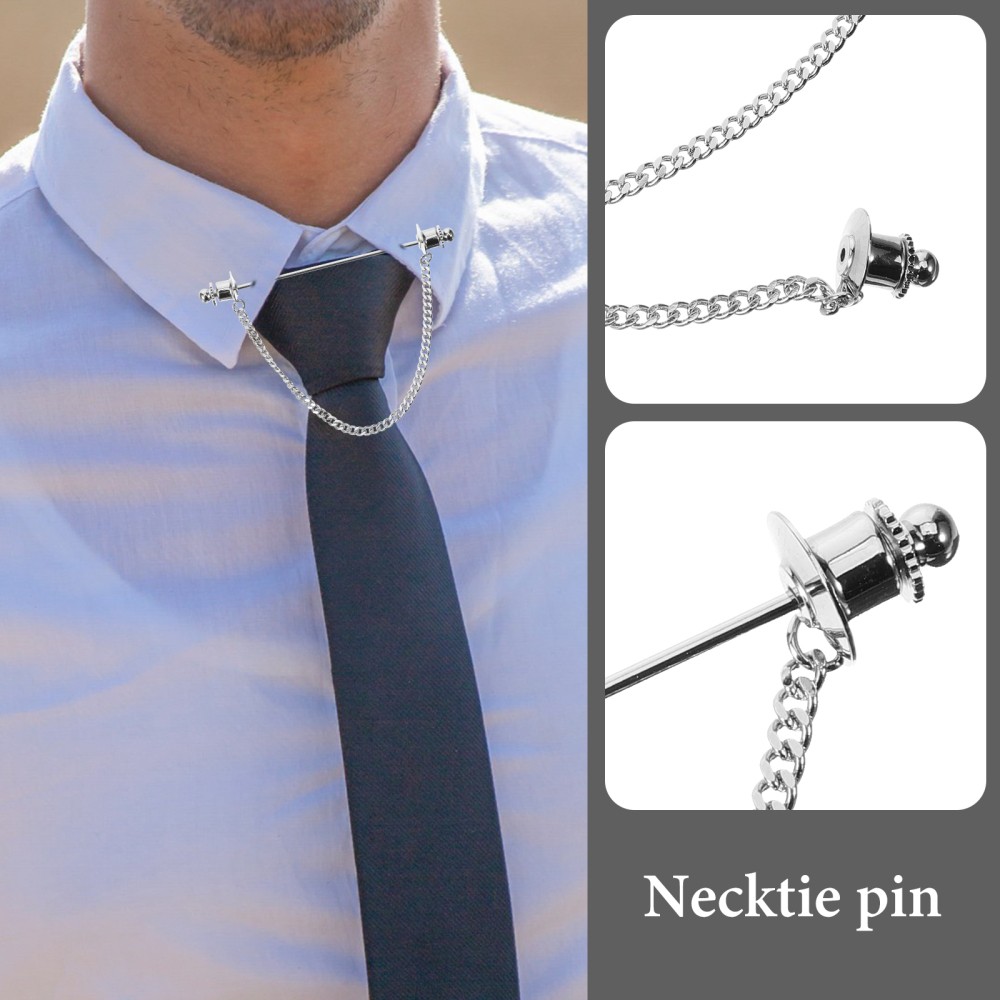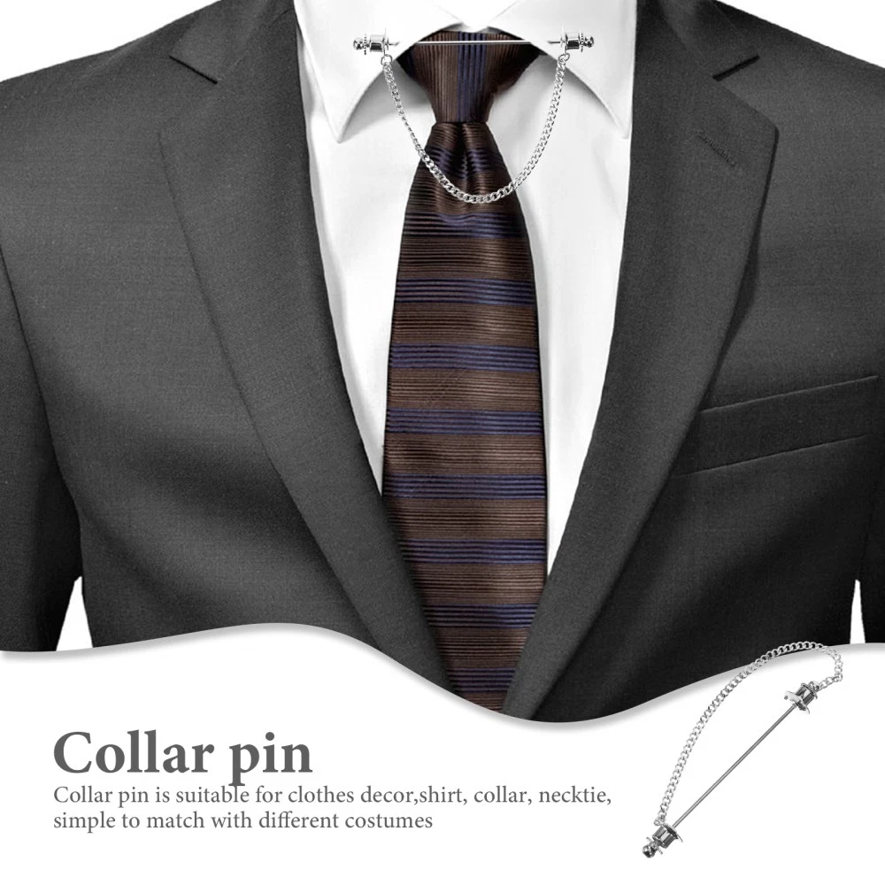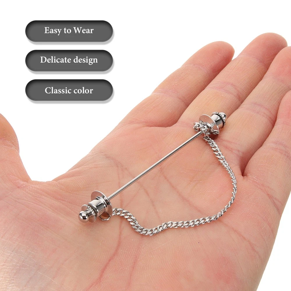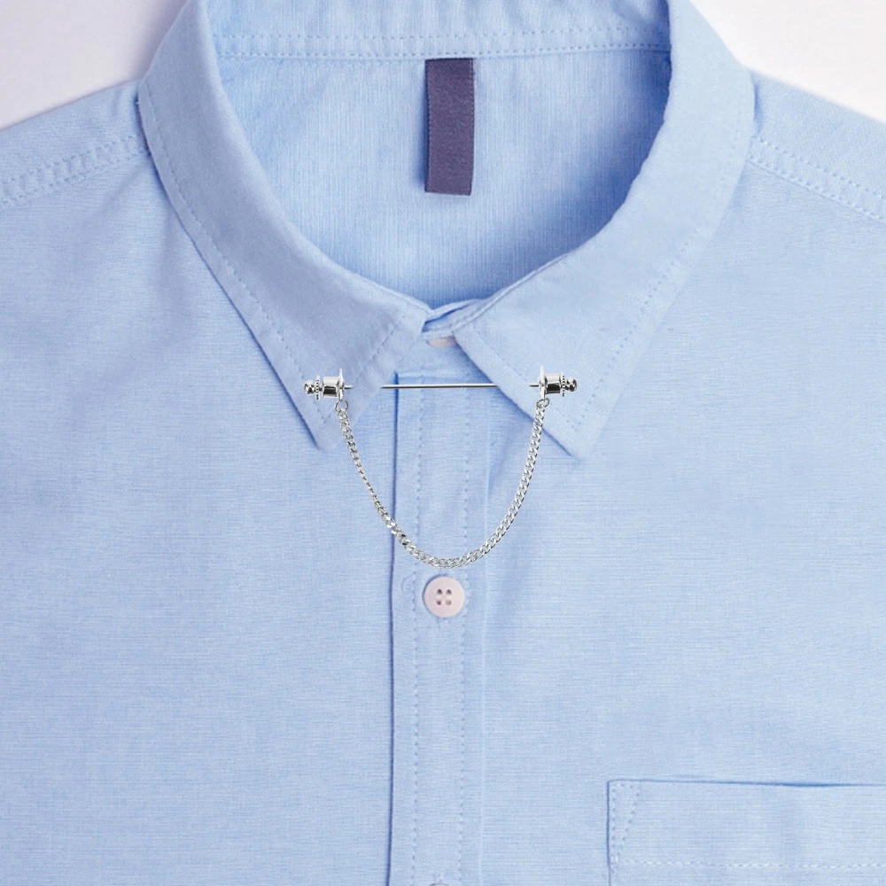 Men's Chain Tie Clip Brooch Collar Buckle Shirt Jewelry Pin