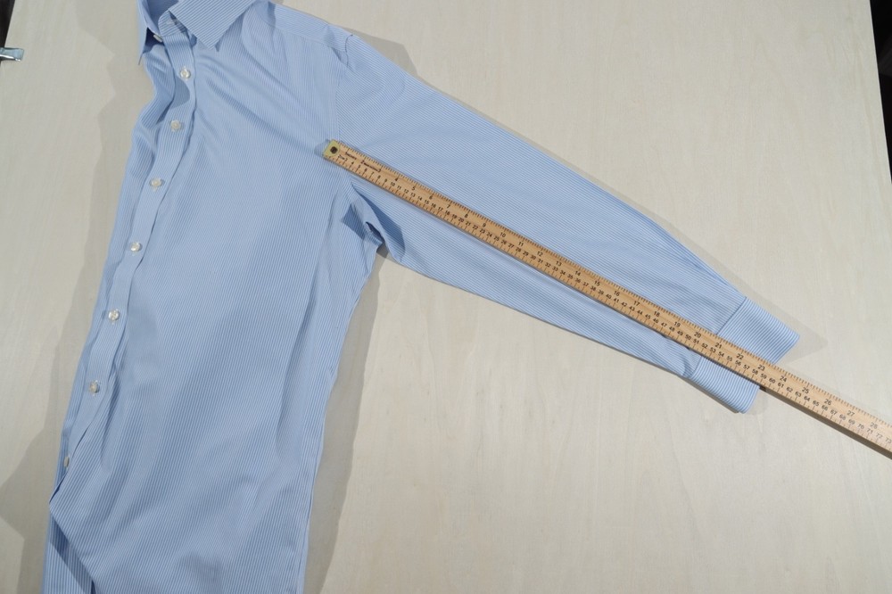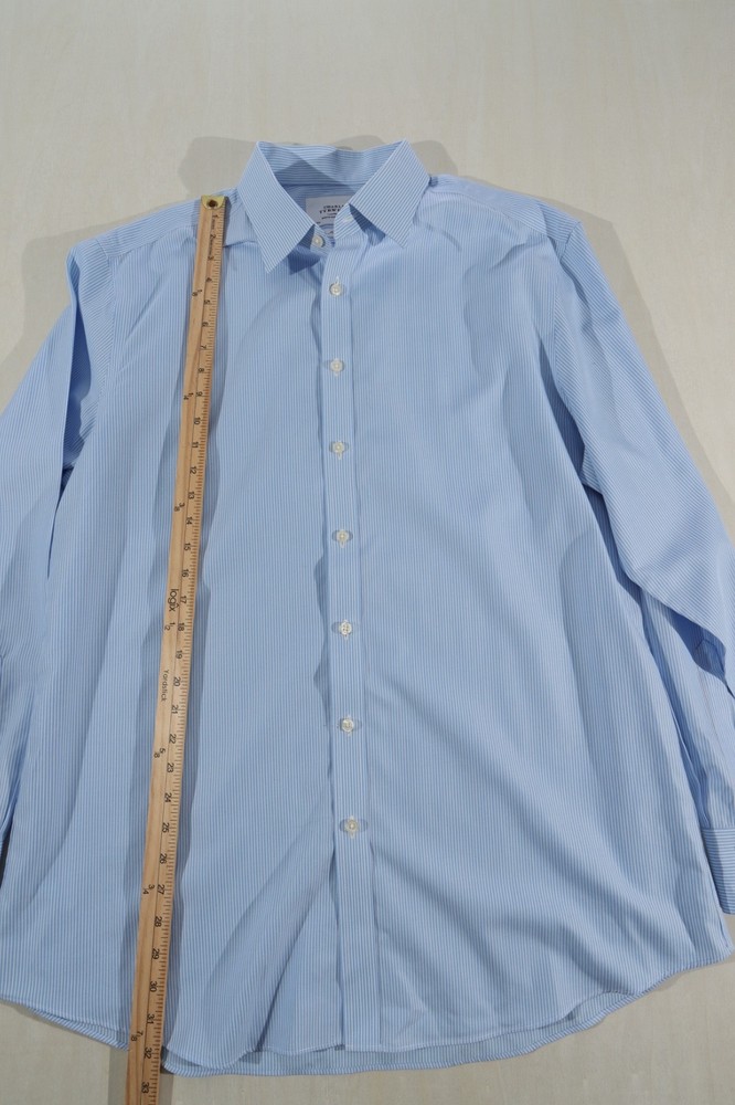 The Men's Charles Tyrwhitt Non Iron Slim Fit Dress Shirt in Blue Stripe is a sophisticated and stylish choice for any man's wardrobe. Made from 100% cotton, this shirt features a slim fit design that is both flattering and comfortable. The blue and white striped pattern adds a classic touch, while the button-down closure and button-down collar give it a smart and polished look. With a sleeve length of 36 inches and a neck size of 17.5 inches, this shirt is perfect for a range of formal occasions, from weddings to business meetings.