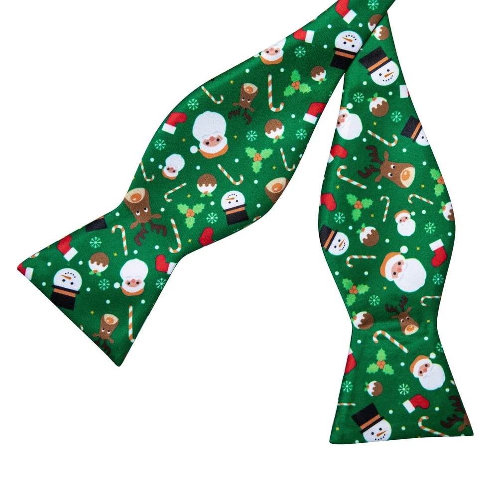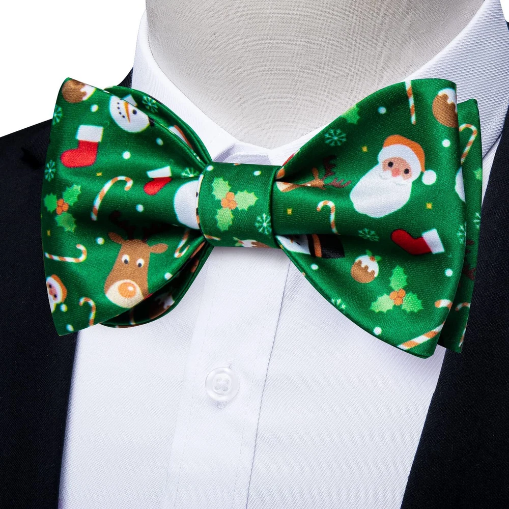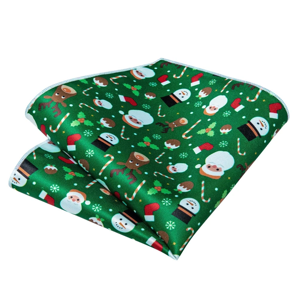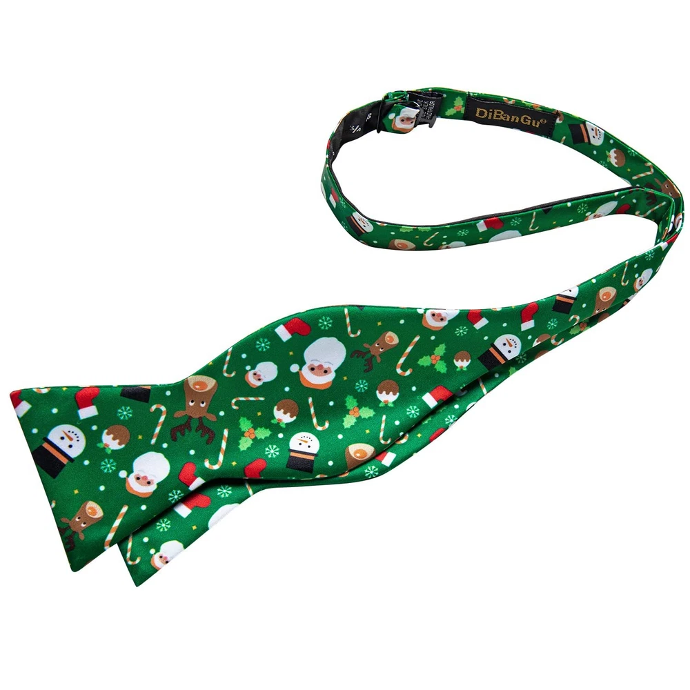 【Christmas Bowtie Set】Silk Green Christmas Self Bowtie+Woven Pocket Square+Cufflinks+Gift Box. The unique pattern and elegant style of the bowtie make your Christmas full of romance. As a Christmas gift for family or friends, the Christmas bowtie is definitely a big surprise 【Material and Craft】Christmas green and white snowman bowtie and pocket square are made from Silk. 2000 stitches jacquard woven craft, high-density fabric makes the festive bowtie soft and comfortable,non-deformed and durable.Make you look elegant and charming 【Unique Design】With a series of novel pattern and special colors for Christmas, Christmas self bowtie contains every Xmas element you can think of, so that you look full of Christmasy, Best match for Christmas,banquet,holiday party, festival prom and vacation etc 【CLASSIC SIZE】4.5 inches x 2.7 inches, for neck size(Adjustable): 14 inches-18 inches, pocket square size: 9 inches x 9 inches,Cufflink Diameter:0.55 inches. Exquisite men's bowties for a variety of dress shirts and suit tuxedo. Fill your Christmas with ritual 【More Choices】bowties with unsurpassed quality can attract more people's eyes in any occasion which is essential accessories for your wardrobe.To learn more about tie sets in different colors and styles, welcome to our tie