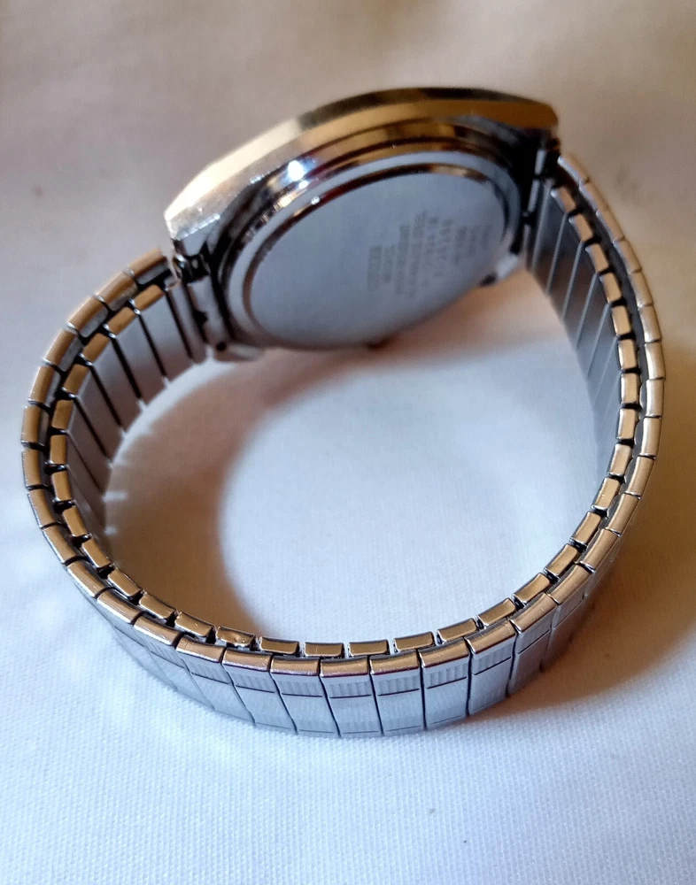 This vintage Citizen wristwatch features a solid champagne dial with Arabic numerals and a date indicator. The round watch face is enclosed in a 12-hour silver bezel, and the watch is powered by a quartz movement with 7 jewels. The two-piece stainless steel strap is perfect for left-handed men, and the case is made of durable stainless steel with a snap caseback. This luxury sports watch is water-resistant and boasts a vintage design, complete with reference numbers 4-731824 and 4731824. The watch is handmade and comes with a seller warranty, but no papers or service records. It is a perfect addition to any watch collection and is sure to make a statement.