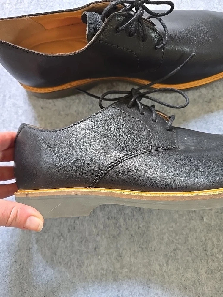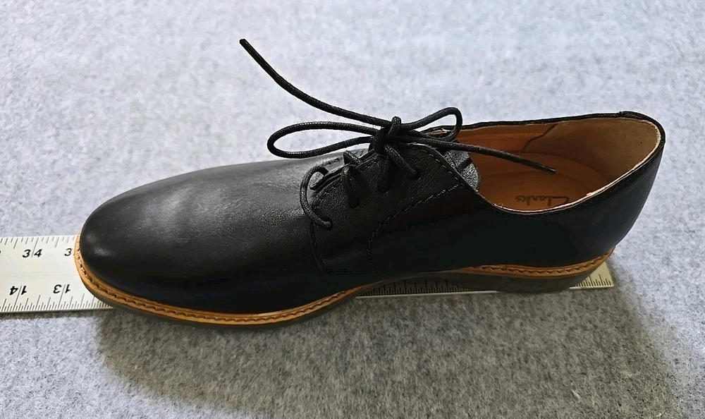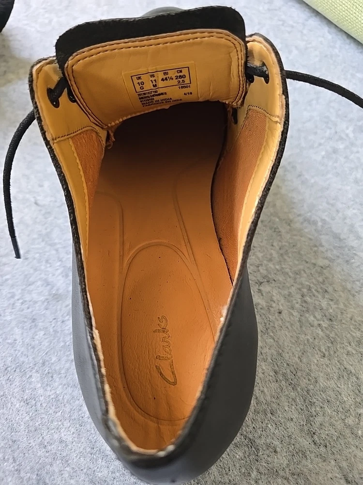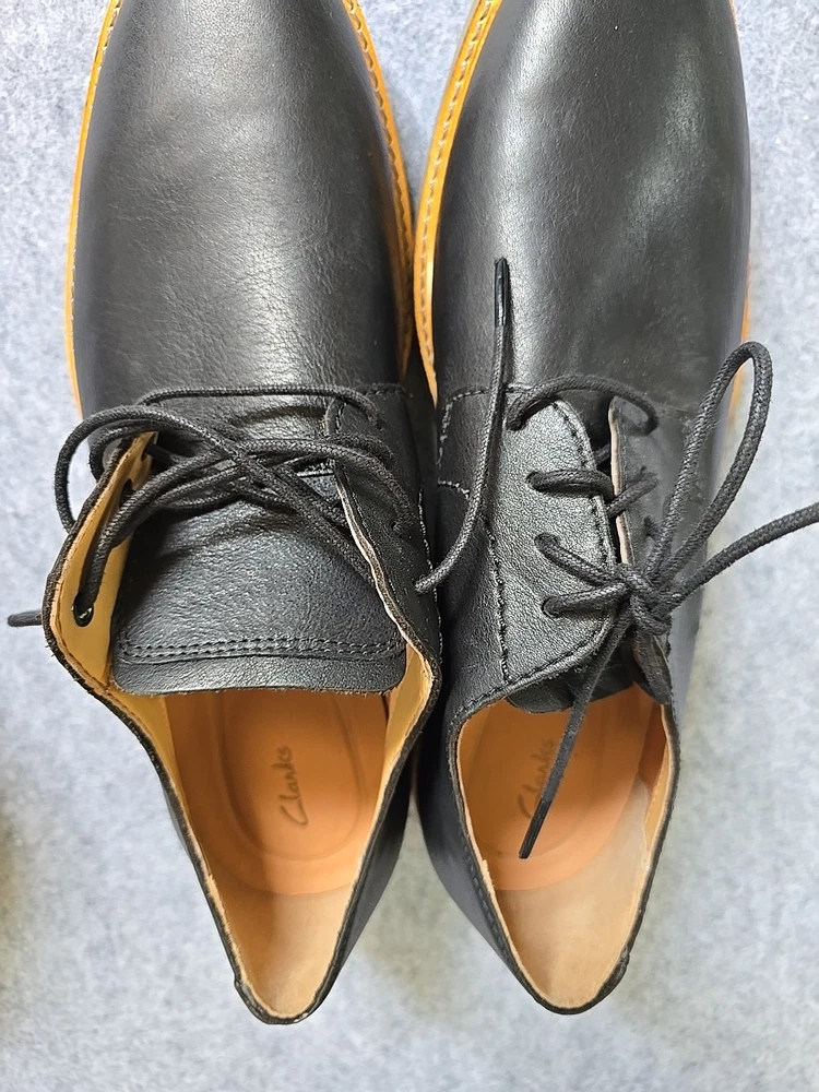 This product is a pair of men's Clarks Artisan Atticus lace-up shoes in black leather, designed for comfort and versatility. There is a scratch on the left boot, shown in the photo.Watch carefully so that there are no questions later. With a round toe shape and leather upper material, these shoes are suitable for various occasions including travel, activewear, casual outings, and workwear. The shoes feature a lace-up closure, leather lining, and insole for added comfort, and a solid black color with logo accents. Made in India, these oxfords have a classic style and a durable leather outsole. Perfect for all seasons, these shoes provide both style and functionality for the modern man. Please check the sizes in the photos to make sure they match your size. All measurements are shown well in the photo. Before sending, additional video and photos are taken!!!