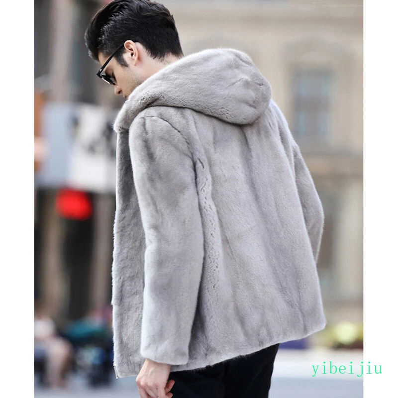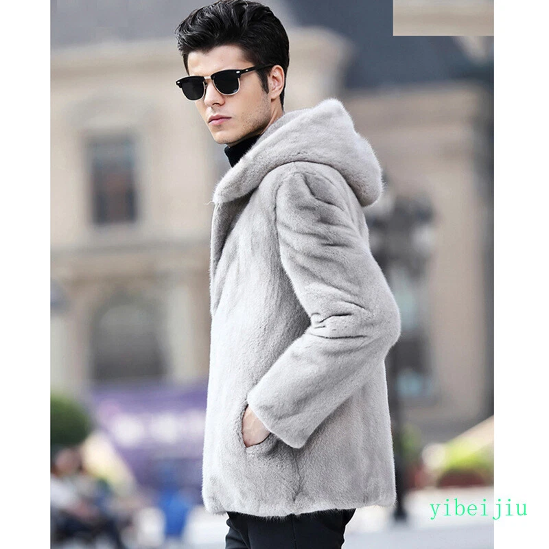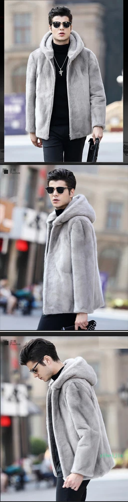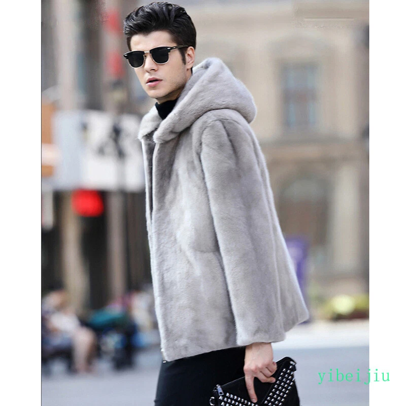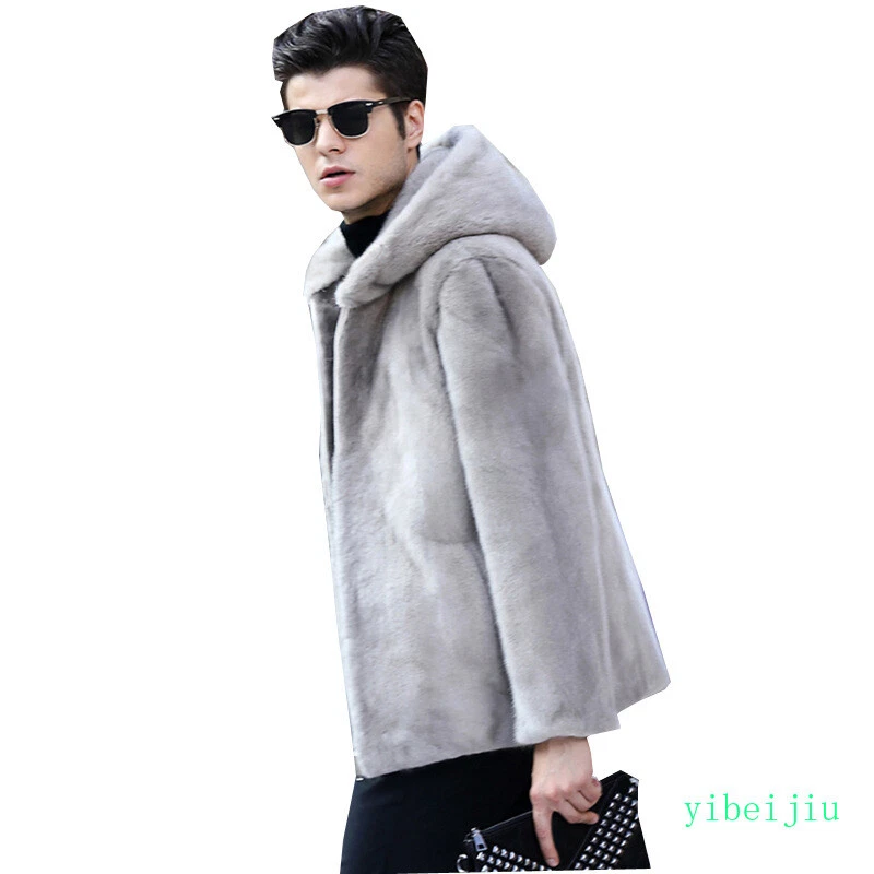 Men's Classic Faux Mink Fur Hooded Coats Winter Slim Fit Clothes Autumn Outwear