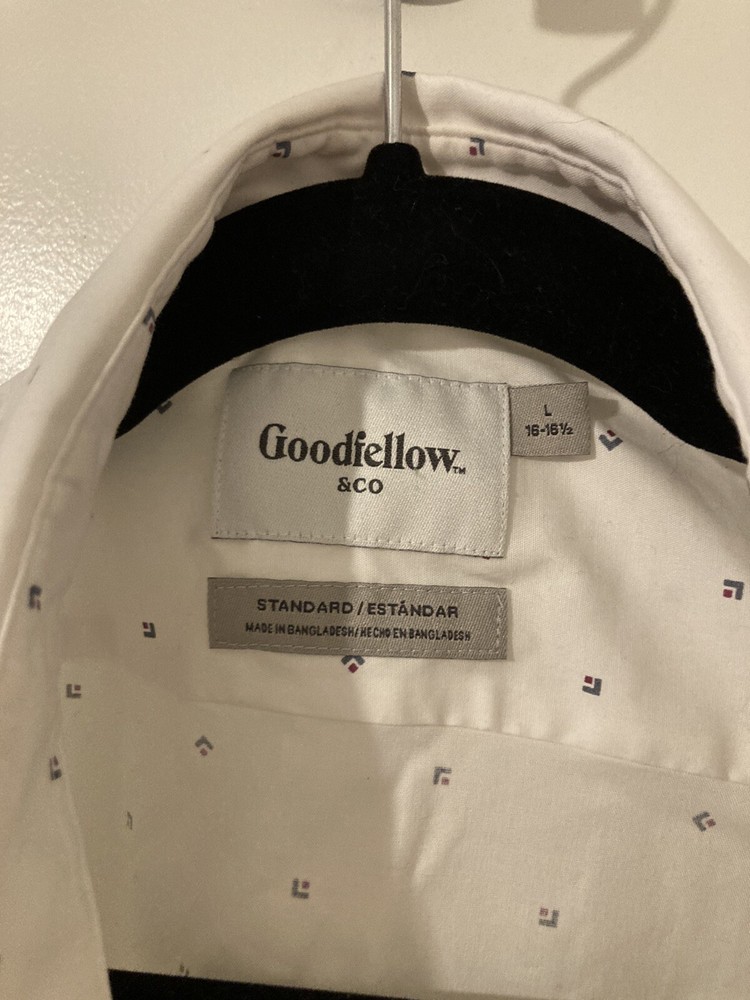 Crafted for comfort and style, the Men's Standard Fit Long Sleeve Button Down Shirt from Goodfellow & Co is a wardrobe essential for those who appreciate a classic look. This dress shirt, available in size large, features a versatile black color that pairs seamlessly with any suit or casual attire. The shirt is designed with a stretch cotton blend, ensuring a balance of durability and ease of movement throughout the day. The collared neckline with a button-down placket adds a touch of sophistication, making it suitable for office wear or social events. With its solid pattern and standard fit, this shirt offers a timeless appeal for the modern man.