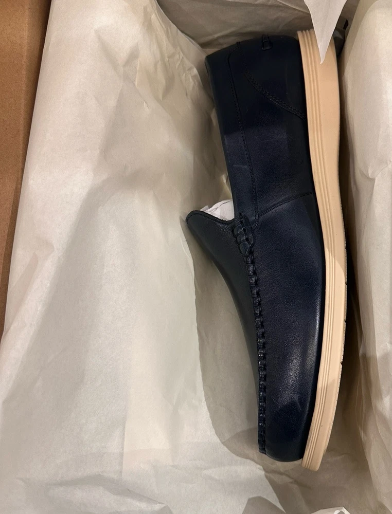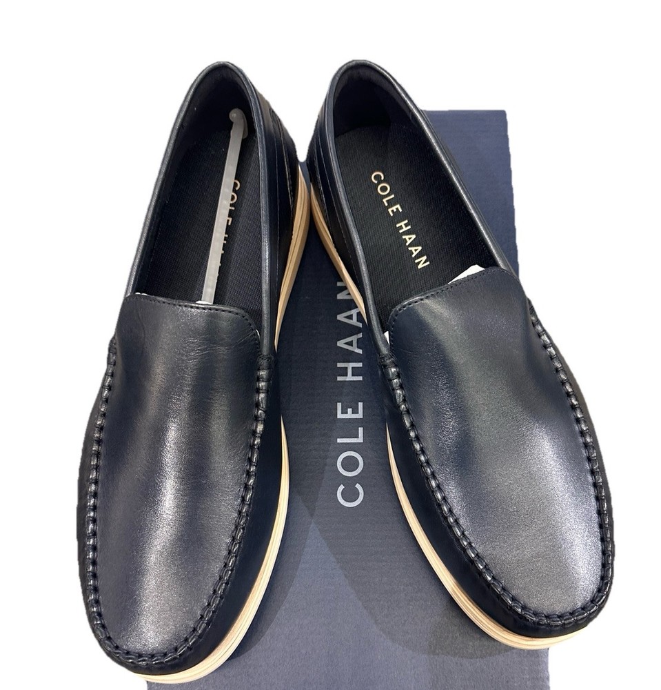 Lining Material: Leather Closure: Slip On Style: Loafers Model: Penny Product Line: Harwich Venetian Shoe Width: M Outsole Material: Leather Theme: City, Going Out, Preppy Upper Material: Leather Pattern: Solid Season: Fall, Spring, Summer, Winter Type: Dress Color: Blue Features: Breathable, Comfort, Cushioned, Lightweight Department: Men Vintage: No Insole Material: Leather Customized: No Brand: Cole Haan Toe Shape: Round Toe