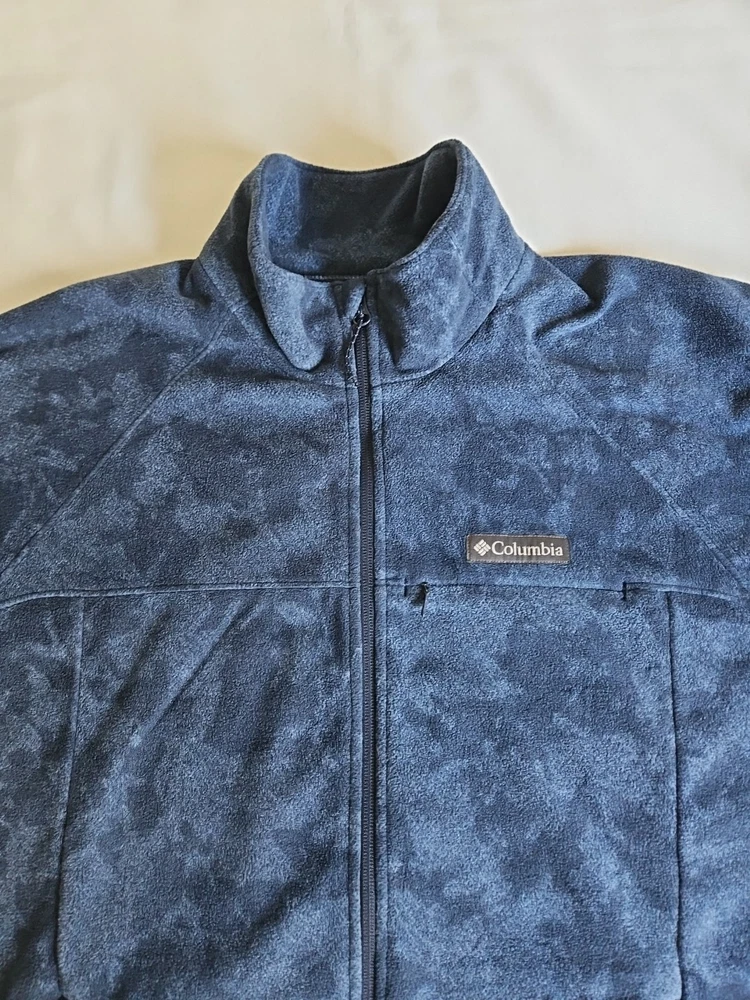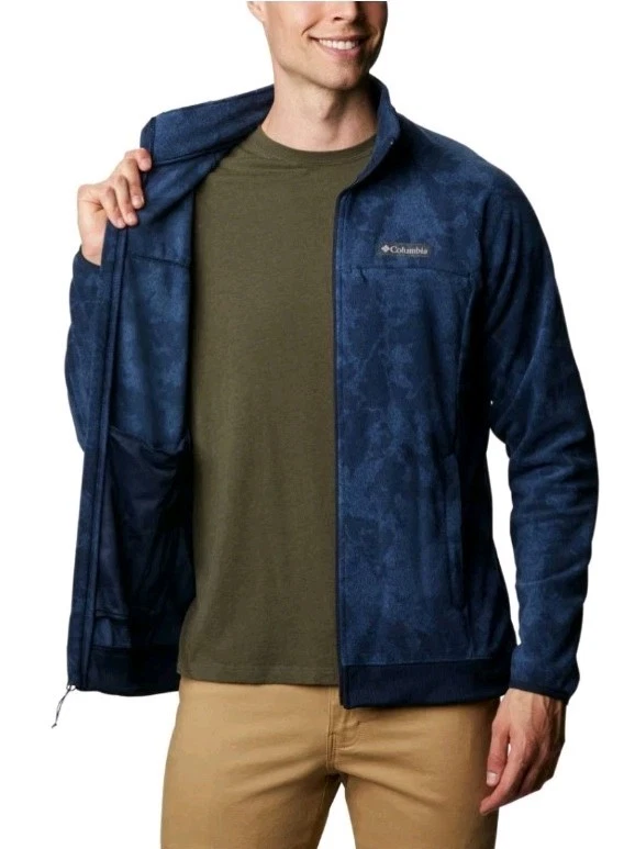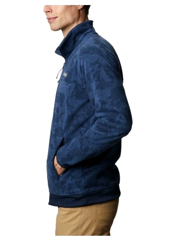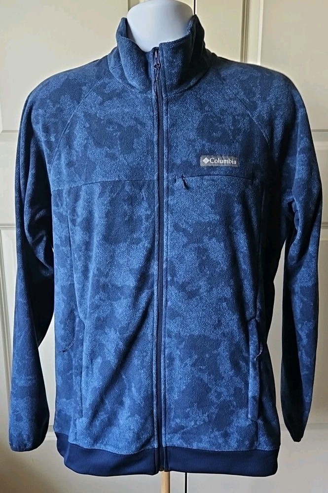 The Columbia Crater Summit Fleece Jacket in blue is a stylish and functional outerwear piece designed for men in size Large. Made from polyester fleece, this jacket is perfect for various occasions including travel, casual outings, workwear, and business meetings. Featuring a stand-up collar, full zip closure, and multiple pockets for convenience, this lightweight and breathable jacket is ideal for outdoor activities in all seasons. With a geometric pattern and logo accents, this Columbia jacket combines practicality with a touch of nature-inspired style, making it a versatile and classic addition to any wardrobe.