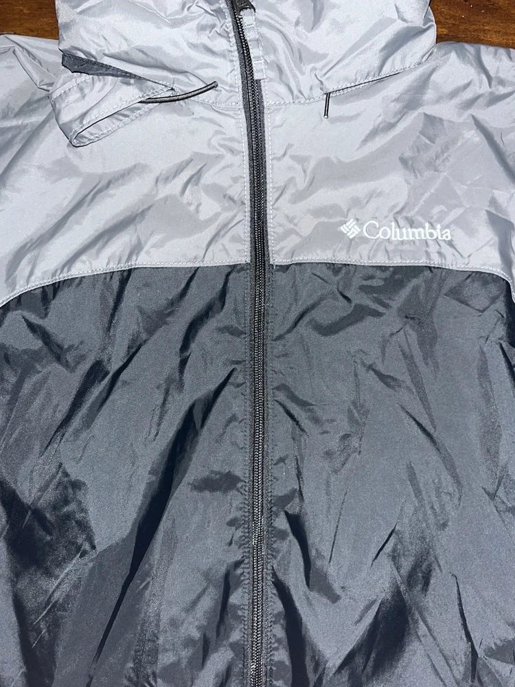 Men's Columbia Zip-Up Windbreaker Jacket with Hood & Pockets in Black & Gray
