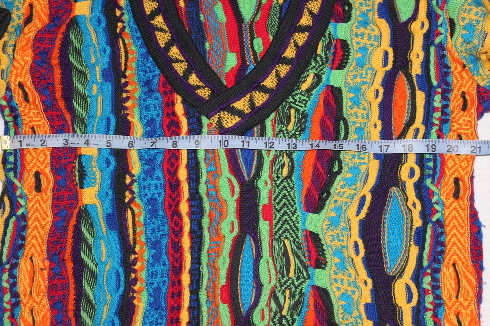 Vintage Coogi 3D Knit Wool V-Neck Sweater Size S Oversized Fit (Fits M to L) Measurements in pictures In Excellent Condition