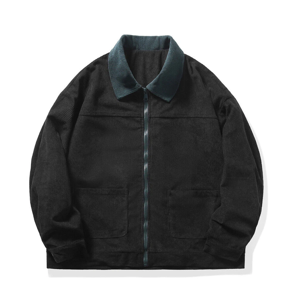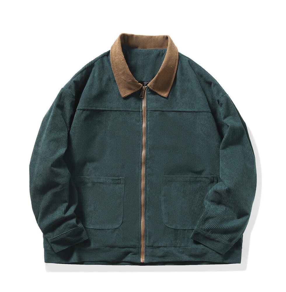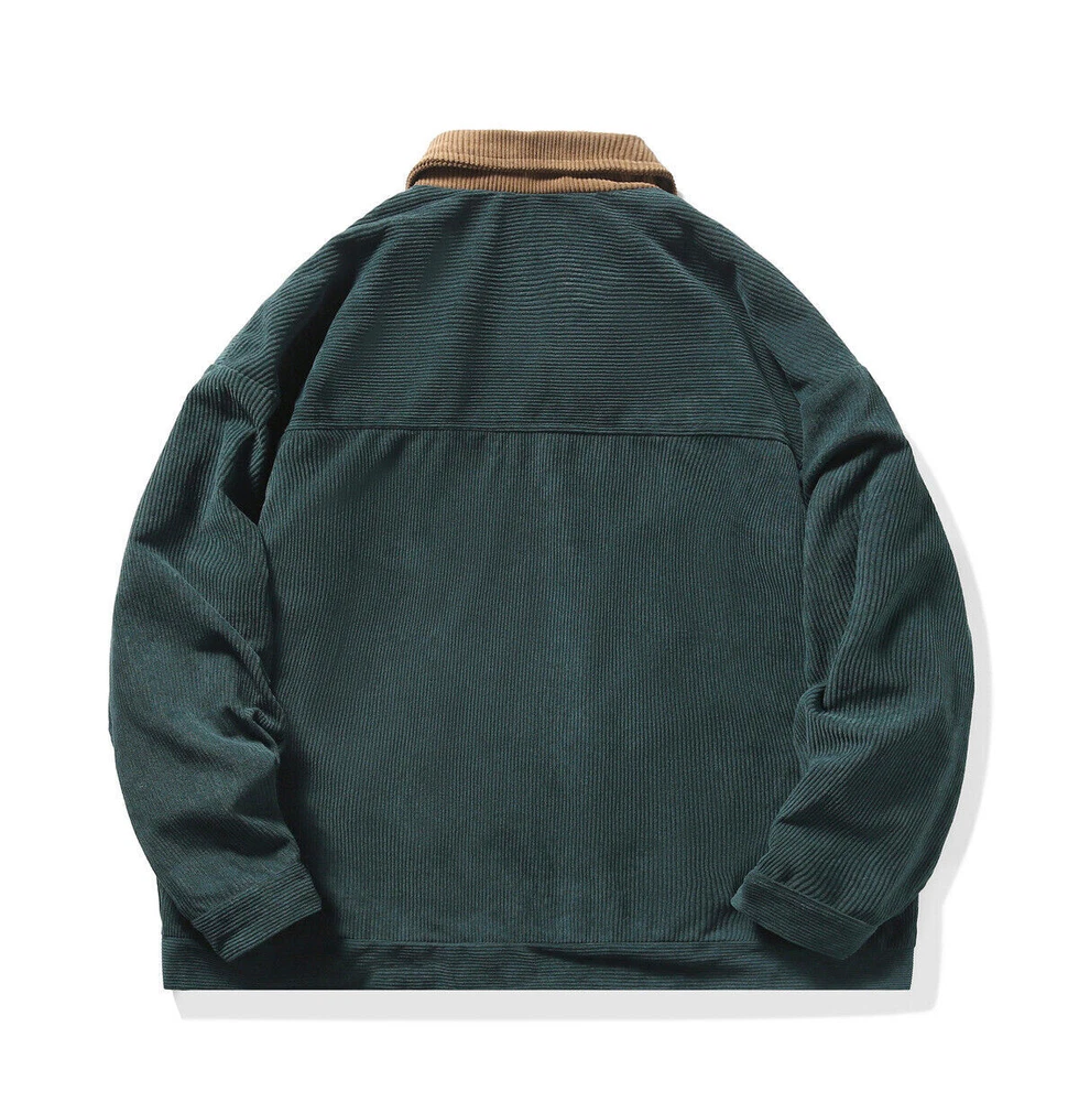 Men's Corduroy Jacket Fashion Vintage Jacket Casual Long Sleeve Baggy Coat Tops