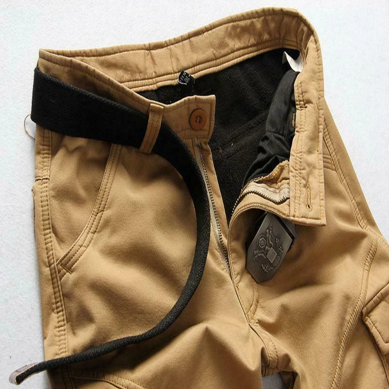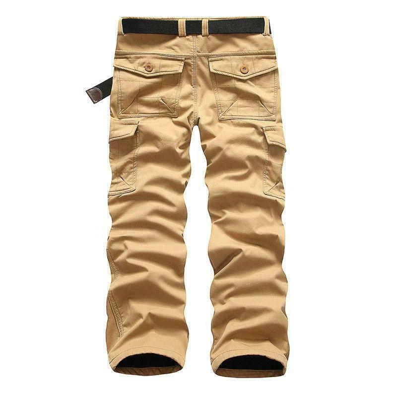 Men's Cotton Fleece Lined Cargo Combat Overalls Work Pants Trousers