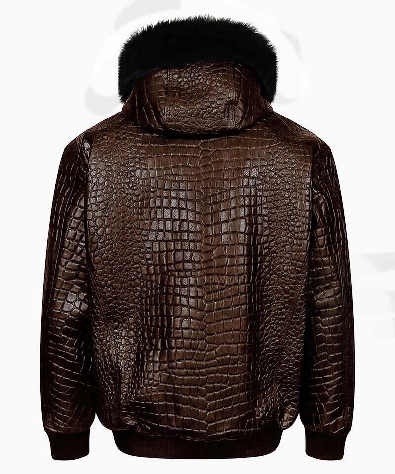 Men's D Brown Croc Embossed Genuine Leather Hooded Jacket All Sizes