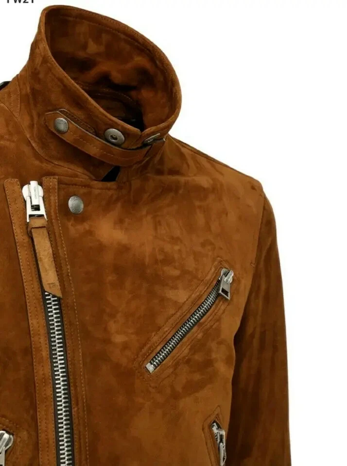 Men's Designer Biker Authentic Suede 100% Classic Soft Leather Jacket Outerwear