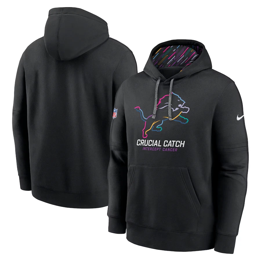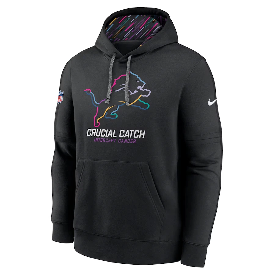 Men's Detroit Lions Black 2024 Crucial Catch Club Pullover Hoodie