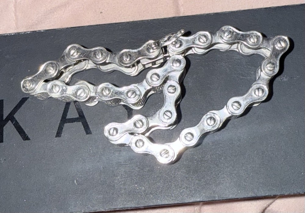Why We Love It A unique choice, this bicycle chain bracelet is sure to grab attention in the best way. Sterling silver Swivel links are adorned in round-cut diamonds Total diamond weight is 1 carat 8.5 inches with box clasp Details Item #: 112078100 Stone(s) icon Stone(s) Stone(s) Specs Total Weight (CT. T.W.):1 Color:I Clarity:I3 Lifetime Diamond Commitment:Yes Stone Type:Diamond Stone Color:White Stone Shape:Round Stone Carat Range:1 Ctw - Under 3 Ctw Stone Class:Natural Stone Setting:Prong Metal(s) icon Metal(s) Metal(s) Specs Metal Type:Sterling Silver Metal Color:White Bracelet Design icon Bracelet Design Bracelet Design Specs Bracelet Style:Fashion Bracelet Length:8.5 Bracelet Clasp Type:Box Product Details icon Product Details Product Details Specs Length:8.5 in Clasp Type:Box