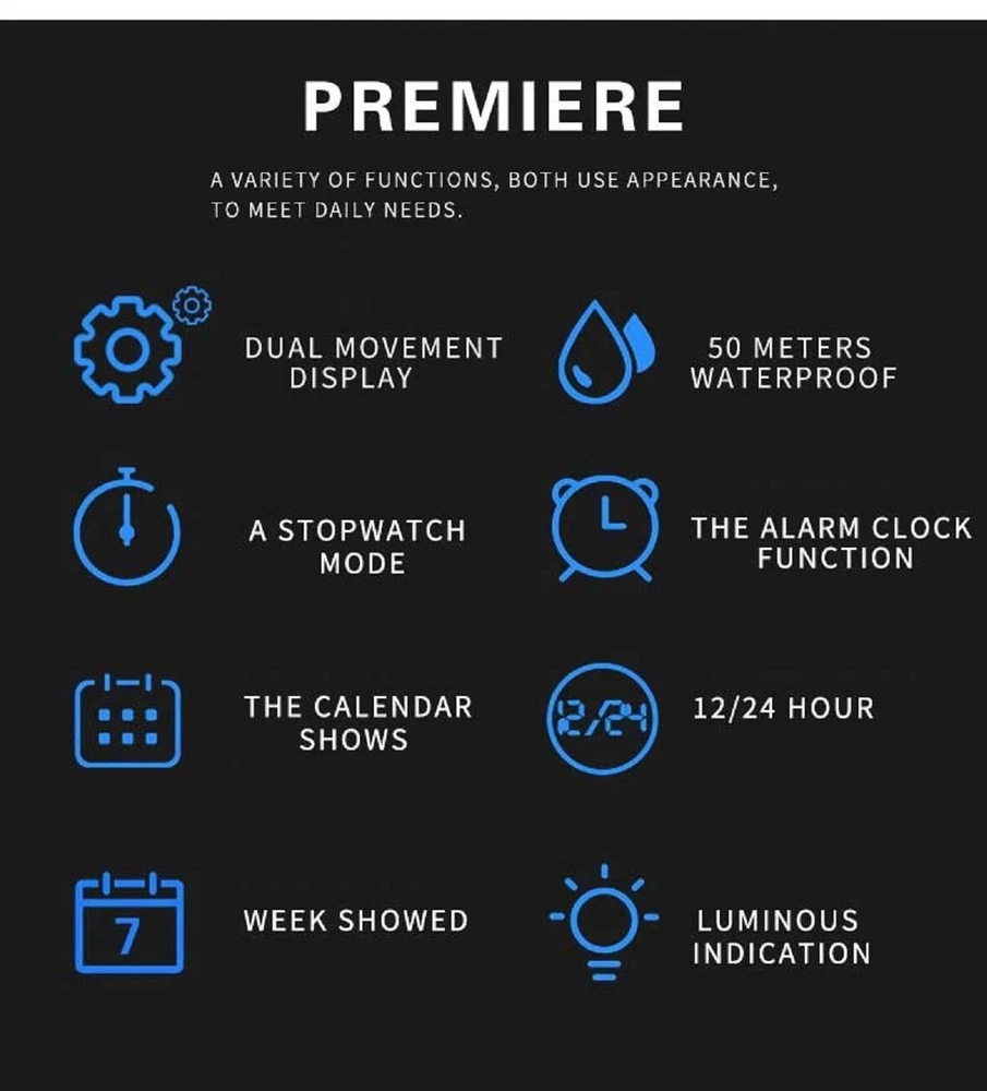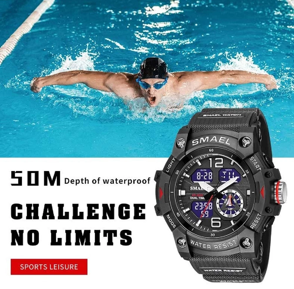 best_buyer_stores Men's Dual Display Sports Red Watch Waterproof LED US for Free Fast Shipping ( 4 - 7 Days Super Fast Delivery ) Description This watch is Luxury, elegant and fashionable, bringing it to show your elegance and provide you with an extraordinary luxury experience. Consist of many multifunctional features and appearance to the US fashion. And has excellent quality and beautiful packaging, is very suitable for giving as a gift to men. Main Features: -100% new label and high quality; -Top brand luxury high quality design dial, shows precise time. -Movement: Digital, Analog and accurate travel. -Dual time shows with LED backlight function. - LED display , Shock Resistant , Date , Complete Calendar , Multiple Time Zone , Alarm, Water Resistant, Stop Watch, 12/24 Hour Clock etc... Specifications Type: Men's Sports Watch Style: Sport, Fashion, Casual, Military Movement: Japan Original Digital Movement Color: Red Case Material: Strong Rubber + High Strength Hardened Glass Strap Material: Strong PU Watch of Dial: Round Dial Diameter: 51mm Case Thickness: 18mm Band Width: 22mm Water Resistance Depth: 5ATM (50M) ( NOT RECOMMENDED TO PRESS ANY BUTTONS UNDER WATER ) NOTE: Package Included: - 1 × Genuine Sports Watch (NO BOX) - 1 × User Manual Booklet Seller's Blessing We know that when a person buys a new item, the buyer hopes to have a new beginning and make a little change in his life. Watch is a friend of time, I wish you a new beginning, cherish time and make progress. Please contact us if you have any questions or concerns before or after you purchase. We will reply to you within 24 hours. Hope you will get 100% satisfaction! Usually the package will be shipped within 2 working days after the payment is confirmed. All the orders will be packed carefully with excellent quality and good condition. Thanks for looking to purchase from our store! You will get a Great Positive feedback from us! And also your positive feedback is highly appreciated. Please contact us immediately if you have any issue with the transaction before opening a request/case. We are honest people and do not worry about anything, we are here to serve you with our best quality service. Thanks a lot. Return/ Replacement Returns accepted if the product is not as described.