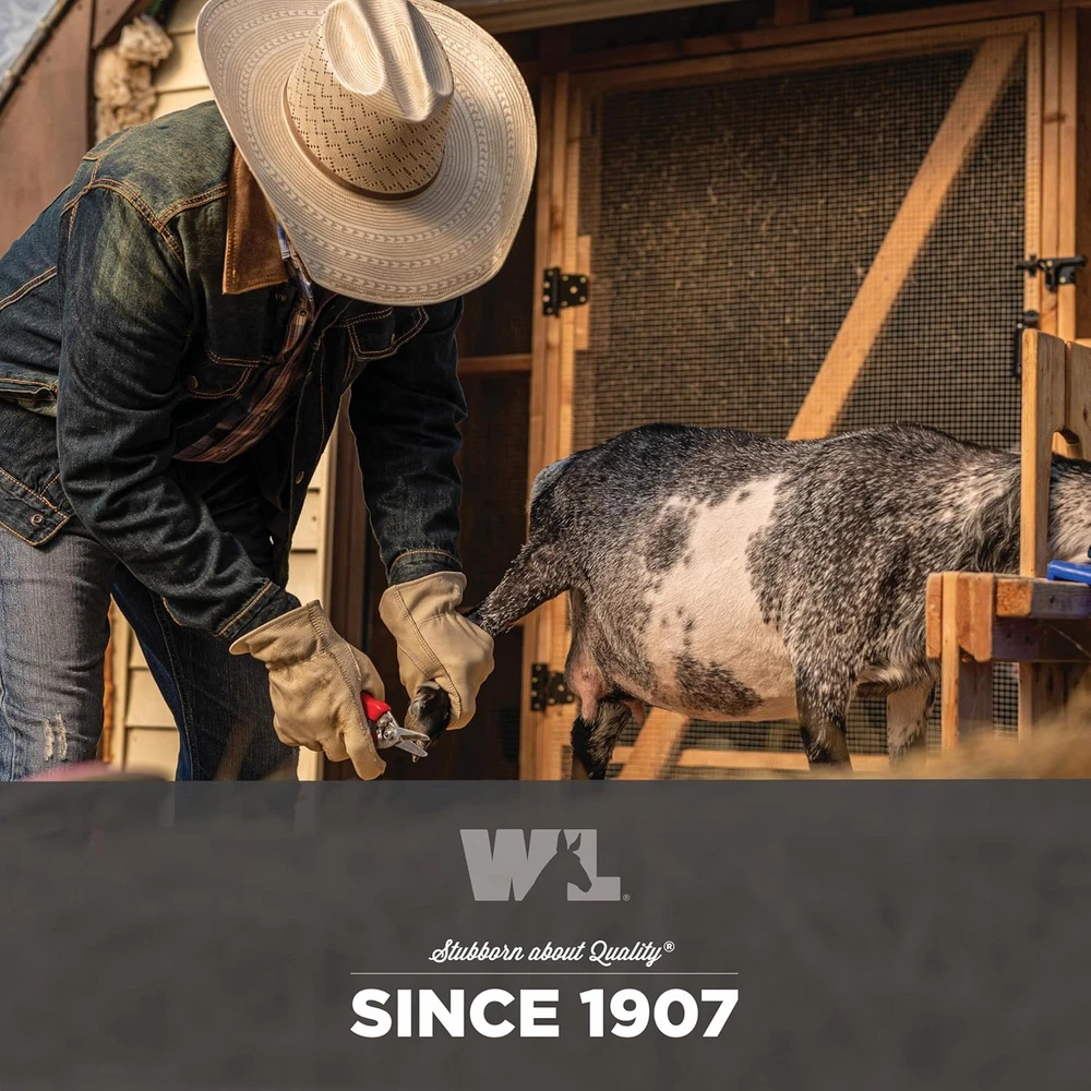 100% GRAIN COWHIDE LEATHER: Superior abrasion and puncture resistance, ensuring long-lasting durability for tough tasks REINFORCED PALM: Added leather palm patch increases grip, wear resistance, and overall glove longevity SECURE ELASTIC WRIST: Keeps gloves securely in place while blocking out dirt, debris, and other elements VERSATILE USAGE: Ideal for construction, yardwork, farming, ranching, motorcycle riding, and general maintenance tasks ERGONOMIC DESIGN: Keystone thumb and reinforced stitching provide enhanced comfort, dexterity, and durability Product Description The Wells Lemont 1130L Grain Cowhide Leather Work Gloves with Reinforced Suede Palm Patch are perfect for your everyday yard work. Made of cowhide leather, these gloves are built to last. Get great protection and flexibility for your hands while working. The palms of the gloves have high-quality reinforced suede for better protection for your hand, gripping, and abrasion resistance. The keystone thumb allows you better comfort and maximum flexibility when working on your projects. The gloves are leather bound to avoid rips or tears in the gloves for longer lasting life and durability. Having a double-shirred wrist allows you to keep a snug fit on your hand while keeping dirt out. Whatever your project may be, gardening, landscaping, or handling tough projects, these Wells Lamont Grain Cowhide Leather Work Gloves with Reinforced Suede Palm Patch will help you get the job done. Wells Lamont - Stubborn about Quality since 1907. From the Manufacturer This men's glove is has palomino grain cowhide leather. It has a straight thumb, thumb shield, bound hem and is gunn cut. The shirred wrist makes the glove easier to take on and off. Large men's.