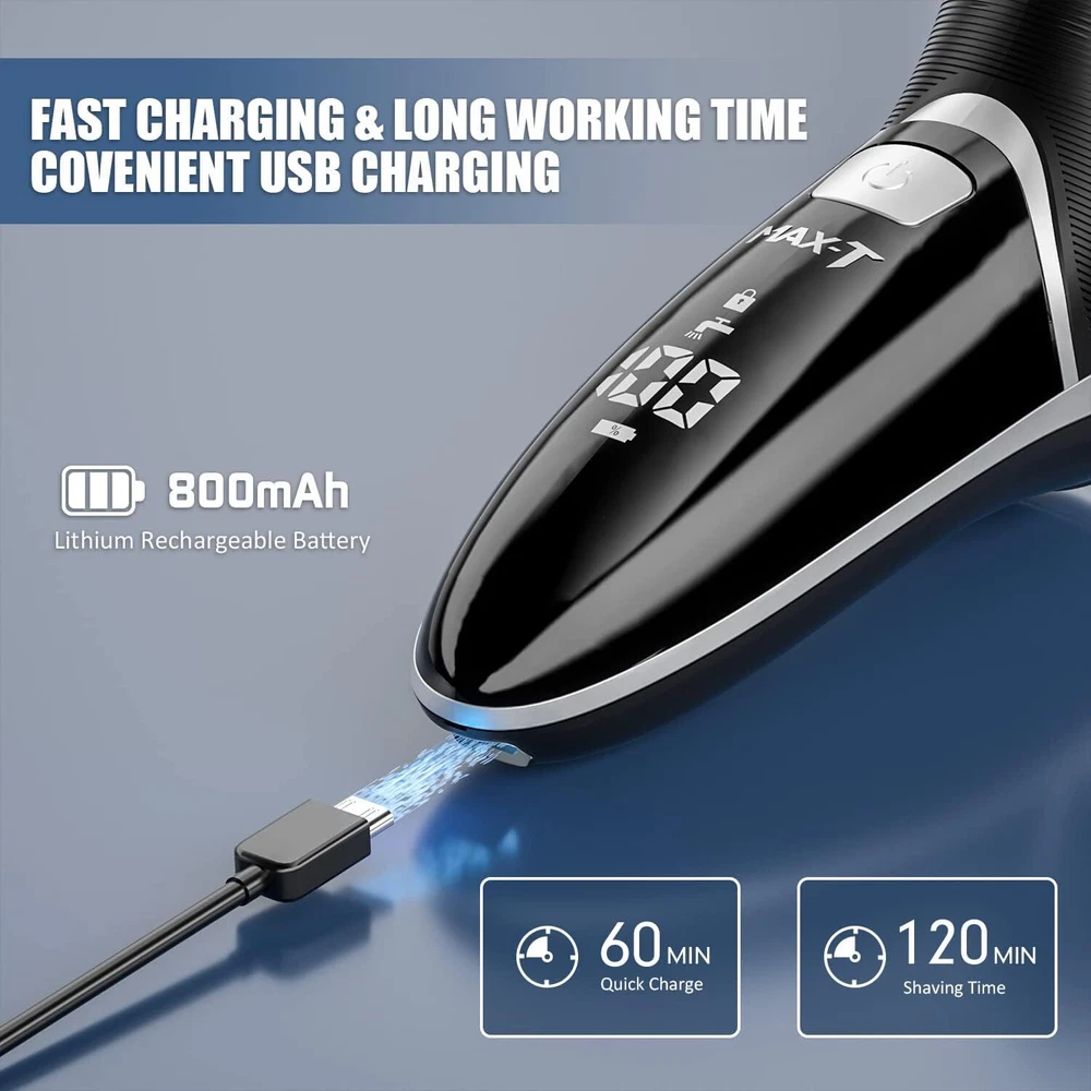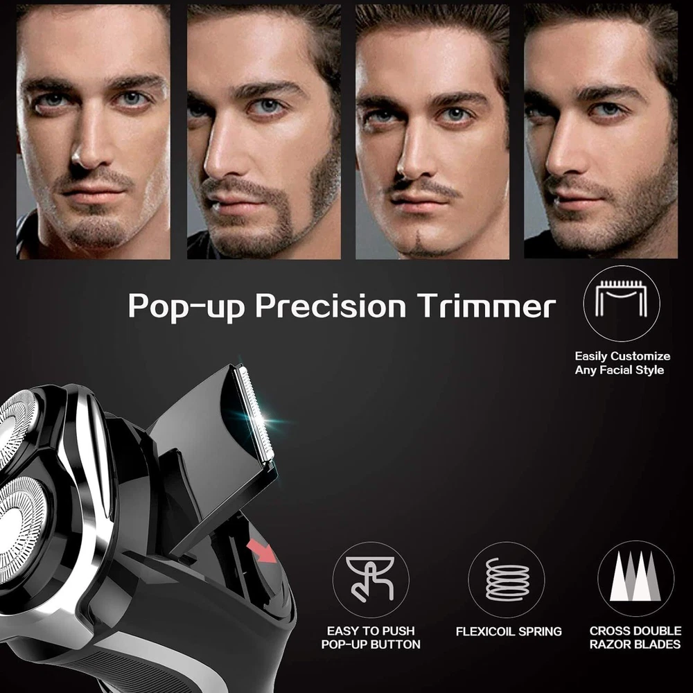 Product Description Men's Electric Shaver - Corded and Cordless Rechargeable 3D Rotary Shaver Razor for Men with Pop-up Sideburn Trimmer Wet and Dry Painless 100-240V Black (Metal Black) 3D Floating Head Shavers: mens electric razor equipped with 3 double-ring floating electric razor heads and double-track ultra-thin cutter net and self-sharpening steel blade, automatically adapts to the contours of your face and neck even jaw, can gently help the shaver glide smoothly over your skin, gives you a comfortable and close shaving experience Faster USB Charging & LED Display: mens electric shaver comes with a USB cable(adapter not included),can be connected to the computer, power bank, car, and other USB device, more secure and convenient; Provide 120 minutes of cordless runtime after 1 hour quick charging; Battery capacity is designed with battery status 0%-100% display to remind you of recharging, avoiding running out of power mid-shave Upgraded Pop-up Trimmer: this face shaver for men with double-blade pop-up trimmer, one touch to open, trim and detail your beard and sideburns for a clean-cut look to complete your facial hair grooming routine; Travel Safety Locks: easily active smart safety lock by continuously pressing on/off button for 3s to avoid unexpected starting up on a trip IPX7 Waterproof Dry & Wet Shaving: the whole body of the rechargeable mens shavers is waterproof, you'll get a convenient dry shave or a refreshing wet shave with gel or foam, even in the shower; Clean the shaver with ease, at the touch of a button, flip open the shaver head and rinse with water; Note: we recommend you to replace the shaver head every 6 month for best shaving result Best Gift and Intimate Sevice: the electric razor for men with beautiful modern looking and smart design, it is a perfect gift for father, husband, boyfriend and son on Father's Day, Valentine’s Day, birthday, christmas or any other special occasion; If you don't love this electric shaver for any reason, just contact us at any time, we will answer your questions as our first priority and give you the satisfactory solution within 24 hours About Us We are a reputable seller with many years of experience selling on eBay. Our goal is to provide high-quality products and excellent customer service. Shipping Items will be shipped within 1-3 business days when we received payment. (Orders are not processed on weekends & holidays) Tracking information will be sent once item is shipped. Delivery time depends on destination and other factors Item is shipped to ebay address. Leaving correct address can minimize delay. For international shipping and shipping to Guam, Hawaii and Alaska, Please contact us before placing the order. International buyers please note: Import duties, taxes and charges are not included in the item price or shipping charges. These charges are buyer’s responsibility. We will try our best to reduce the risk of the custom duties. Local pick-up is unavailable at the moment. Contact Us We reply any email messages within 1 business / working days(off-duty at weekend). If you do not get a response from us, then please check your junk or spam mailbox. Our Business hours: Mon-Fri 9:00-18:00, UTC/GMT +8 hours. Please contact us either by clicking "contact seller" in the "purchase history" section or simply click "ask a question" at the bottom of this page. If you are unsatisfied with our item or service, please contact us before leaving any feedback. We are committed to resolve all issues in a friendly and satisfactory manner.