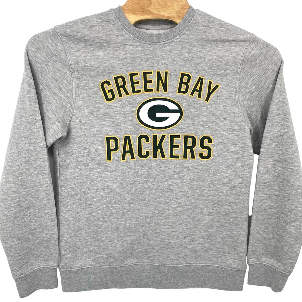 Men's Fanatics Green Bay Packers Football woodmark grey pullover crewneck sweatshirt spellout pit to pit: 20.5" length: 27" Fit's like: men's S/M Item is in good used condition. Look at photos to see the condition. All, if any, flaws have been pictured. See the last photo for measurements along with my suggestion of what it fits like. Please know which measurements fit you prior to purchasing, and don’t just rely on my suggestion. Feel free to ask any questions! ***Item is cross posted on several platforms***