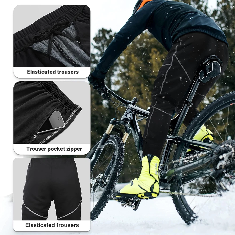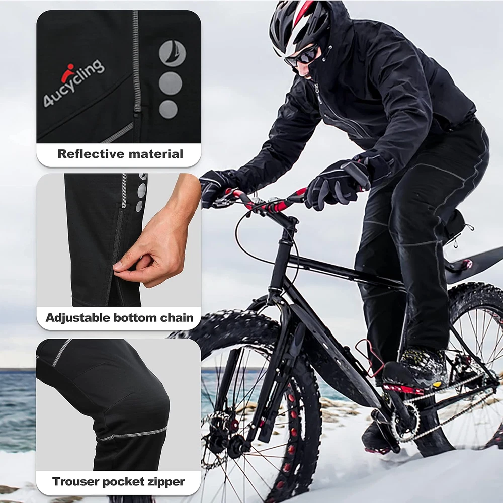Product Description The 4ucycling sweatpants are made from high-end materials with a microfleece lining that is windproof and splash resistant to keep you warm in cold weather. The knees and pleated crotch enhance your range of motion for easy riding. Don't let the cold weather keep you off your bike! Perfect pocket The zippered pocket can meet daily needs. Smart phones, keys, and all kinds of cards can be placed in it. An excellent zipper can prevent items from falling out. Drawstring The drawstring design can reasonably adjust the force on the waist, which is more widely applicable to riders with different waist circumferences, and can be more comfortable to enjoy riding. Excellent seams The seams are processed in 4 steps, so they won’t scratch the skin. At the same time, there is no need to worry about the thread opening. It is strong and durable, making it the best partner for riding a bicycle. The zipper on the trousers can be adjusted according to your own needs, and you can pull it up to keep him out of the cold when it is cold, exercise is normal. When you need to relax, you can unzip the zipper to reduce the pressure on your legs. Perfect pocket Drawstring Excellent seams Trousers zipper