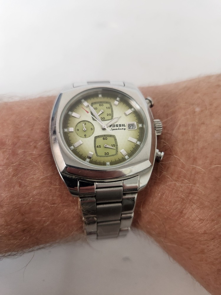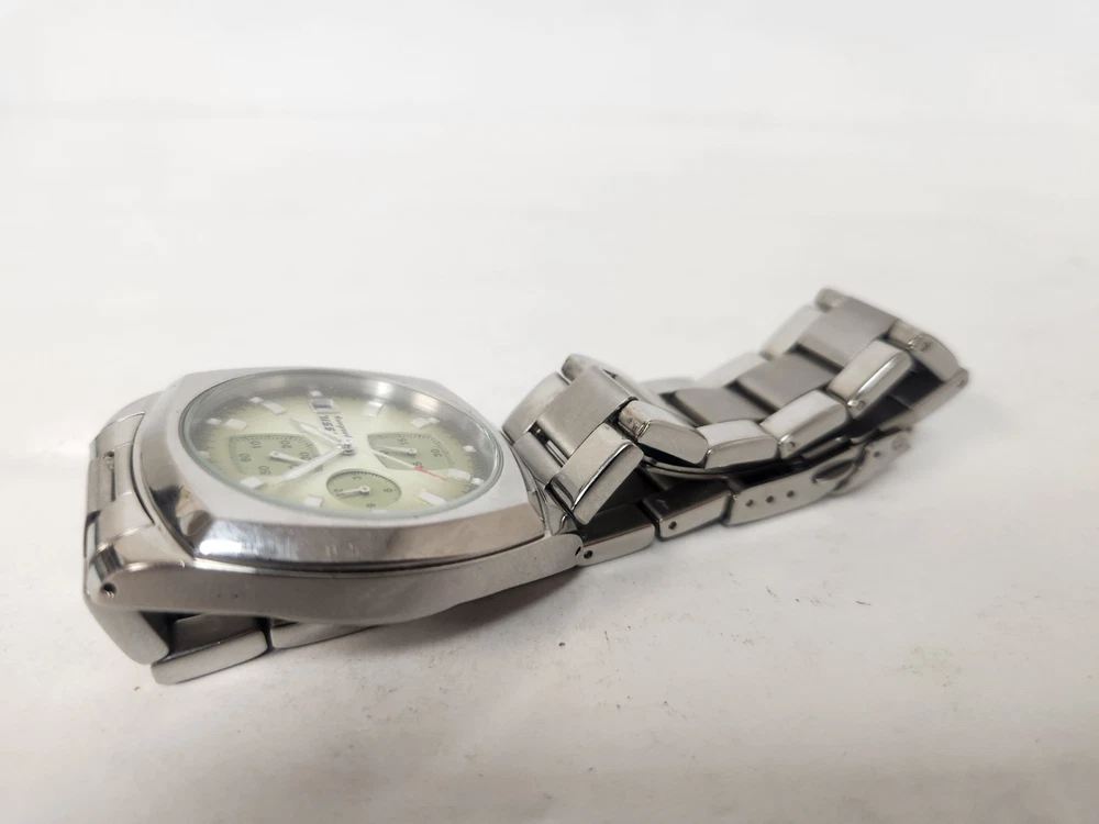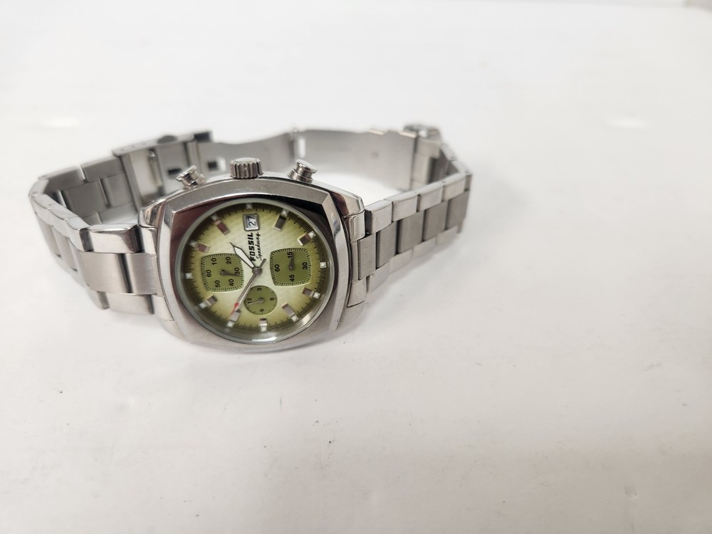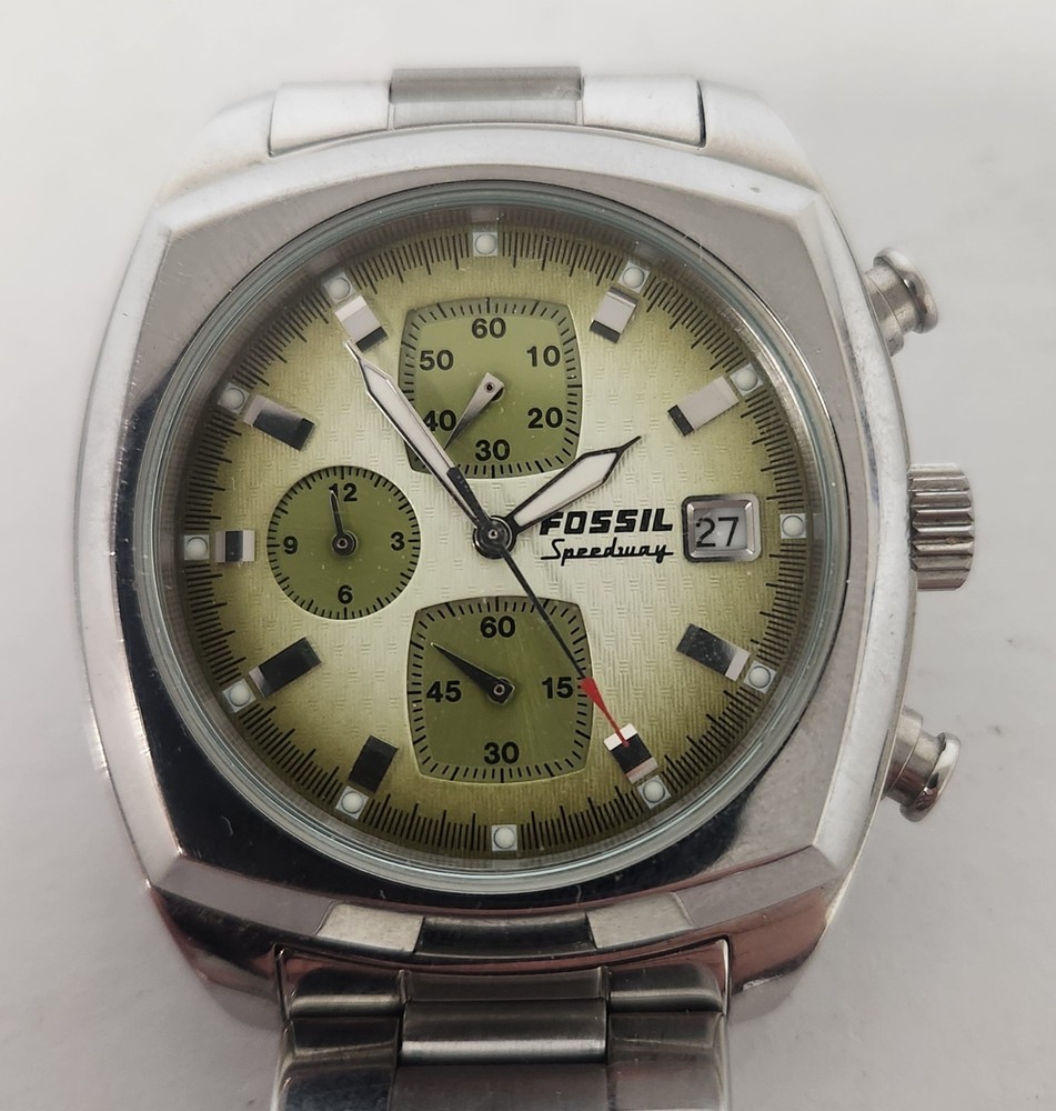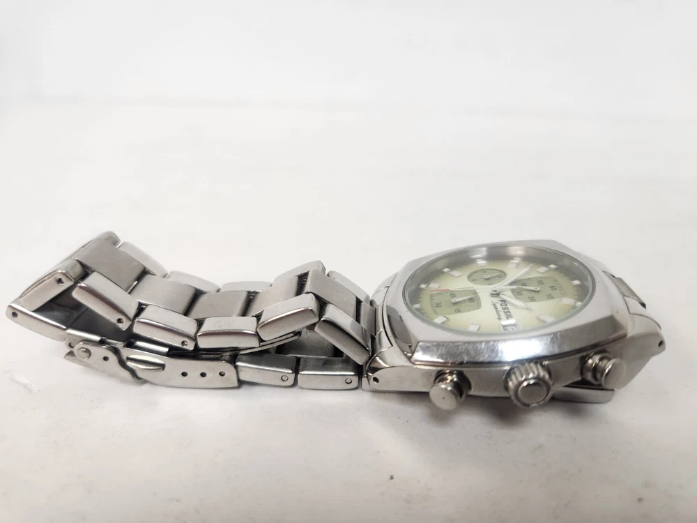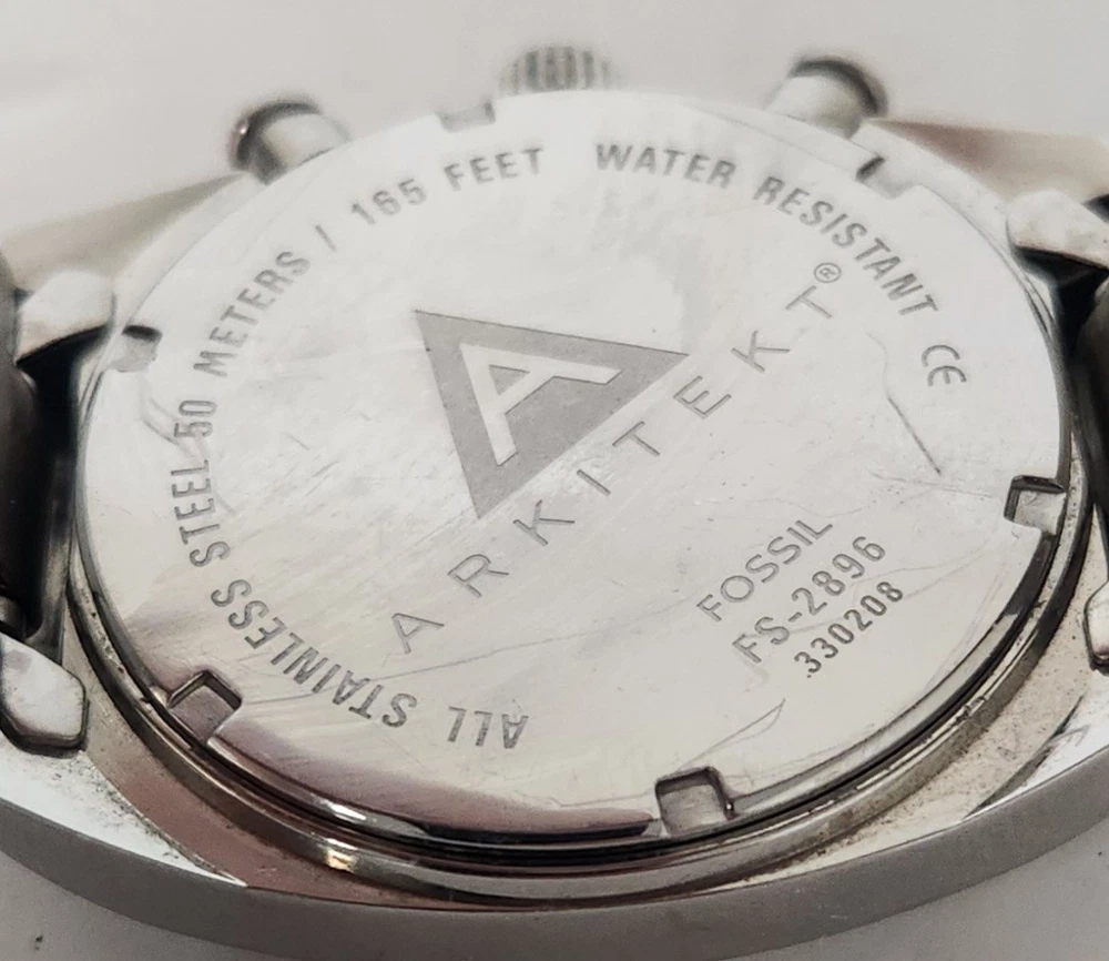 Very good condition, new battery. The Mens Fossil Arkitekt Speedway date Watch FS-2896 is a stylish and durable wristwatch designed for men. Made from stainless steel, this watch is water-resistant, making it ideal for everyday wear. The sleek design and precise date feature make it a versatile accessory for any occasion. With the Fossil brand known for quality and sophistication, this watch is sure to make a statement in any man's collection.
