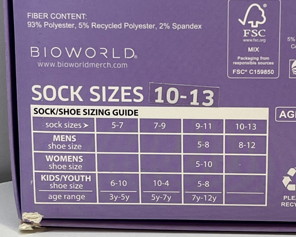 BioWorld FRIENDS TV Show Men’s CREW SOCKS 3 Pairs Novelty Shoe Sz. 8-12 Box Set Brand New See Box For Complete Details and size chart
