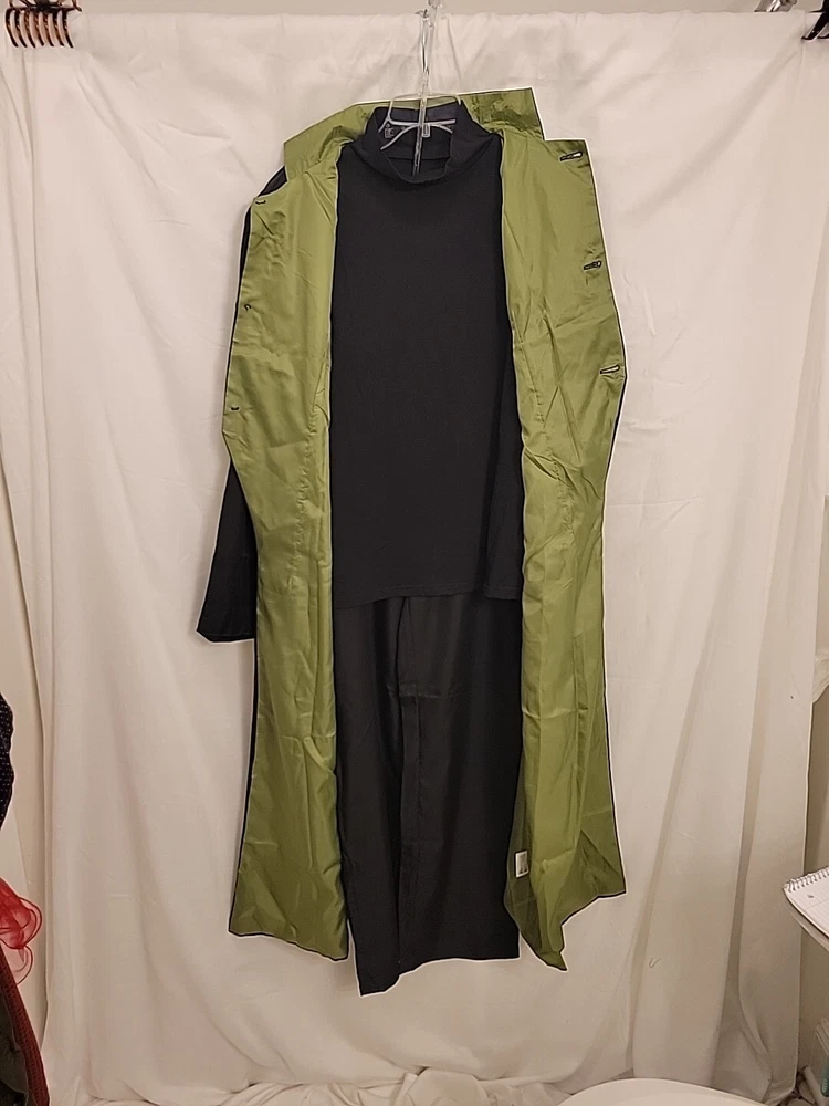 Great costume. Comes complete with shirt, pants and cloak. Has high neck. Green on the inner side of the cloak. Perfect for Halloween or any costume event. Matrix, Anime,