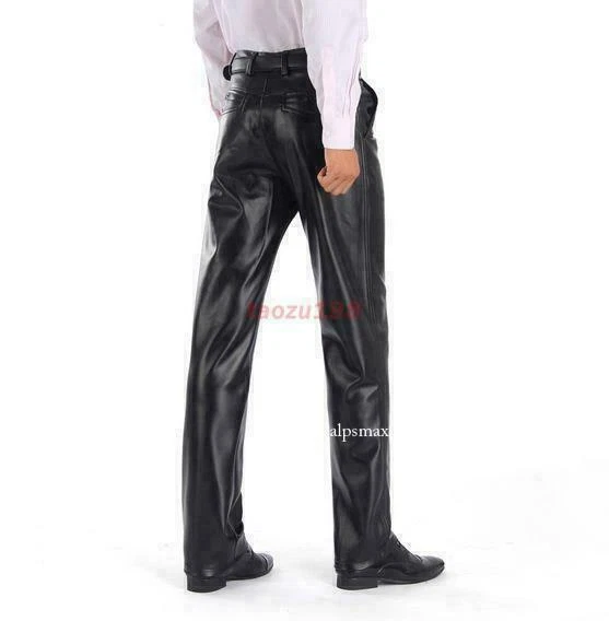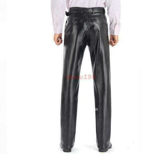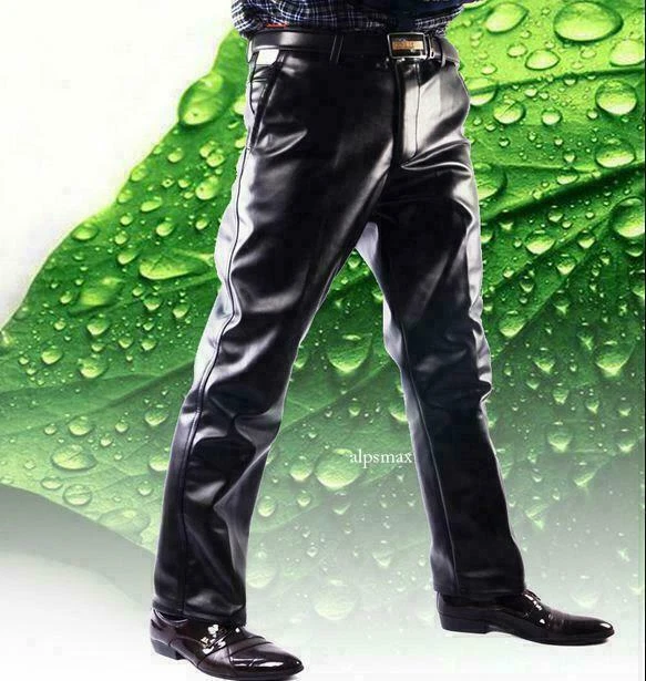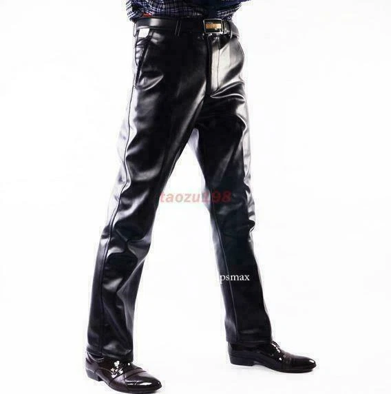 Department: Men Type: Pants Pattern: Solid Accents: Button, Zipper Leg Style: Straight Size: 29-42 Model: \ Country/Region of Manufacture: China Size Type: Regular Fabric Type: Faux Leather Fit: Regular Material: Faux Leather Vintage: No Front Type: Flat Front Personalize: No Garment Care: Hand Wash Only Inseam: 29-42 Waist Size: 29-42 Product Line: \ Handmade: No Style: Casual Pants Season: Fall, Spring, Winter Occasion: Casual Closure: Zip Theme: Biker, City, Rock, Winter Pocket Type: Slash Pocket Features: Comfort, Thermal, Waterproof Rise: Mid (10-12 in) Brand: Unbranded