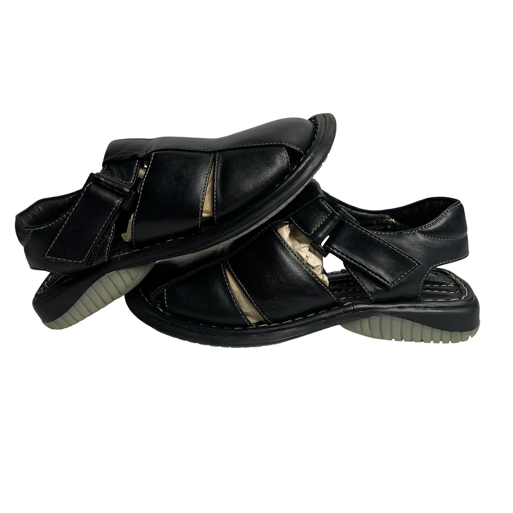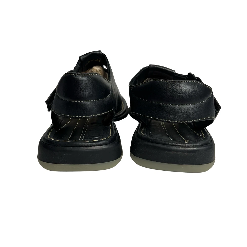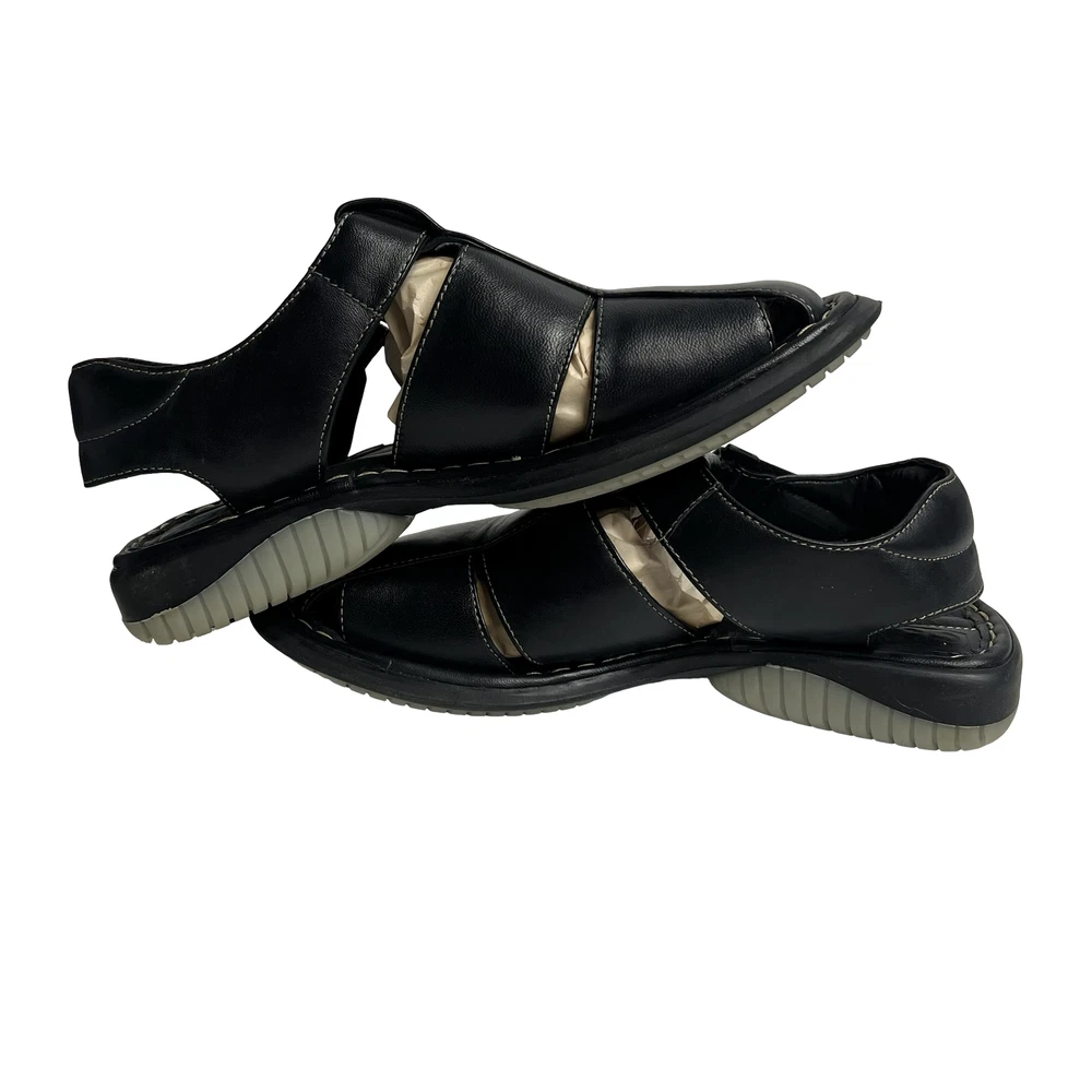 Men's GBX Black Leather Fisherman Sandals Size 8 Comfort Adjustable Walking Shoes
