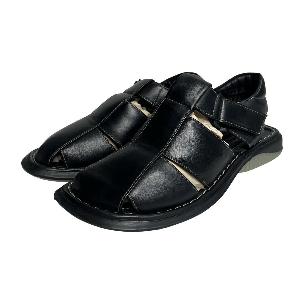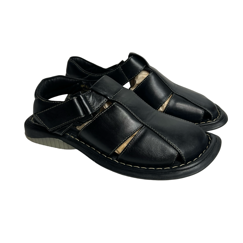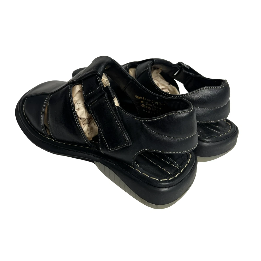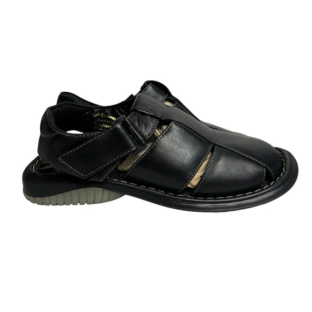Men's GBX Black Leather Fisherman Sandals Size 8 Comfort Adjustable Walking Shoes