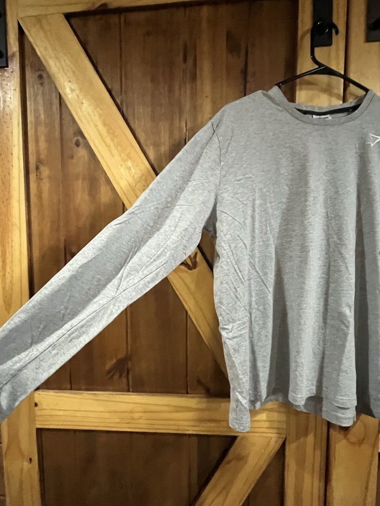 Men's GYMSHARK Long Sleeve Gray T-shirt Large Preowned Excellent Condition! Smoke free home.