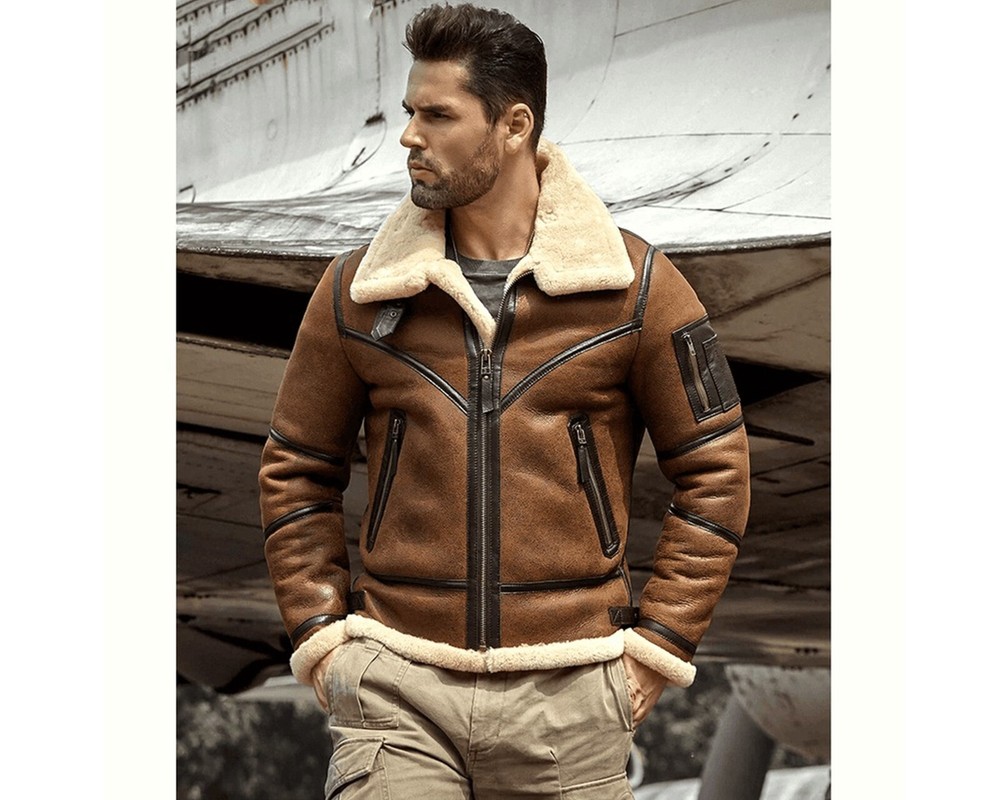 🛩️ SHEARLING B3 AVIATOR JACKET – MEN'S BOMBER FLIGHT REAL LEATHER WINTER COAT Rugged Warmth. Classic Military Style. Stay warm and stylish with this men's shearling B3 aviator jacket , designed for freezing conditions and high-altitude flair. Made from 100% premium high-quality sheepskin leather , it features a plush shearling lining for unbeatable comfort and insulation. This real leather bomber flight coat brings together iconic WWII style and modern craftsmanship—built for winter, riding, or everyday cold-weather wear. Whether you're after a pilot jacket , military bomber , or a rugged winter leather coat , this piece delivers durability, warmth, and timeless edge. 🔧 Specifications Material: Premium Sheepskin Leather Color: Classic brown with off-white shearling Lining: Full internal soft shearling Collar: Buckled shearling collar Front Closure: Heavy-duty zip Cuffs: Turn-up shearling cuffs Waist: Adjustable leather side straps Pockets: 2 side hand-warmer pockets 1 inner pocket Back: Plain vintage-style back panel Style Tags: shearling B3 aviator jacket | men's bomber flight coat | real leather winter jacket | pilot bomber coat | sheepskin leather jacket | WWII aviator jacket | brown leather flight jacket 📏 Size & Fit Available in S to 4XL 📌 Tip: For layering, consider one size up 🚚 Shipping Info Fast worldwide shipping via DHL, UPS, or FedEx 📦 Dispatch within 2–3 business days ✅ 30-Day Money-Back Guarantee Return for a full refund within 30 days—no hassle, no stress. 💬 Need Help? Our support team responds in under 15 minutes during business hours. 🛒 Add this classic aviator bomber to your cold-weather wardrobe today and brave the chill in style!