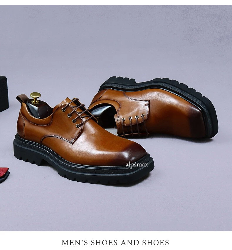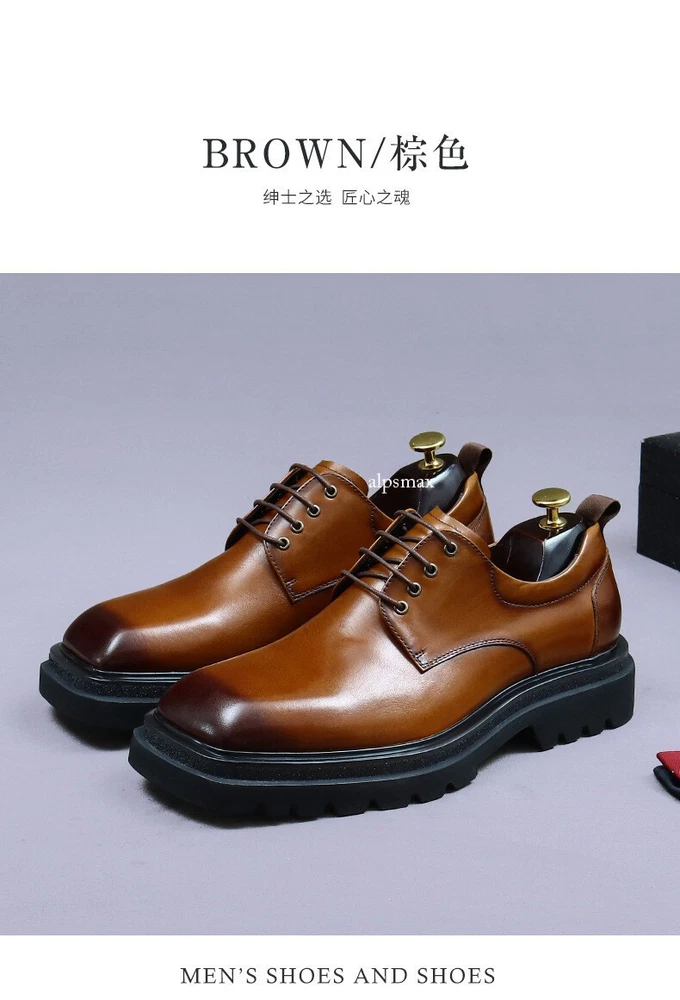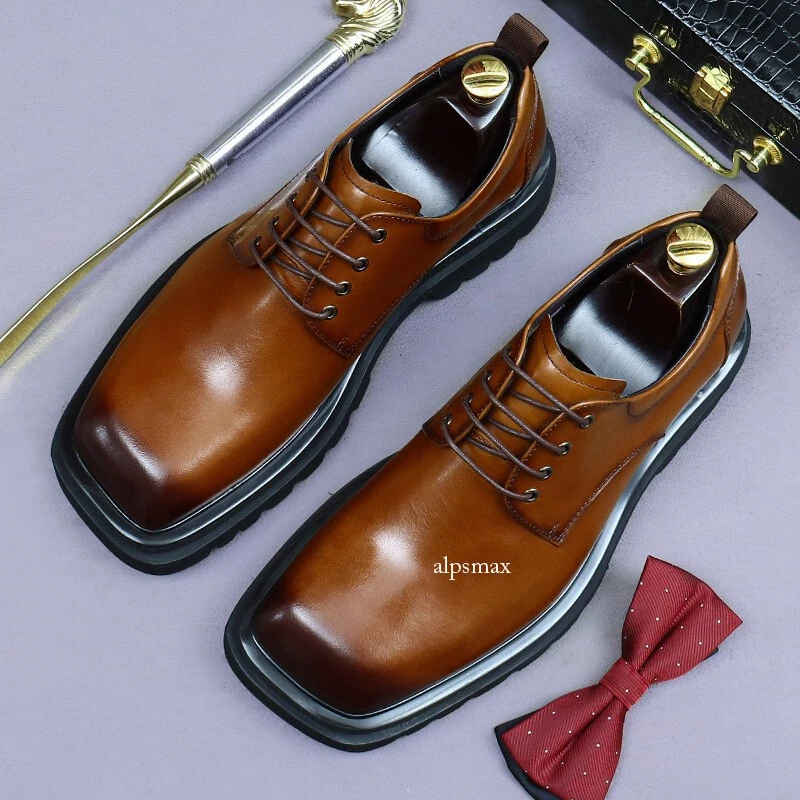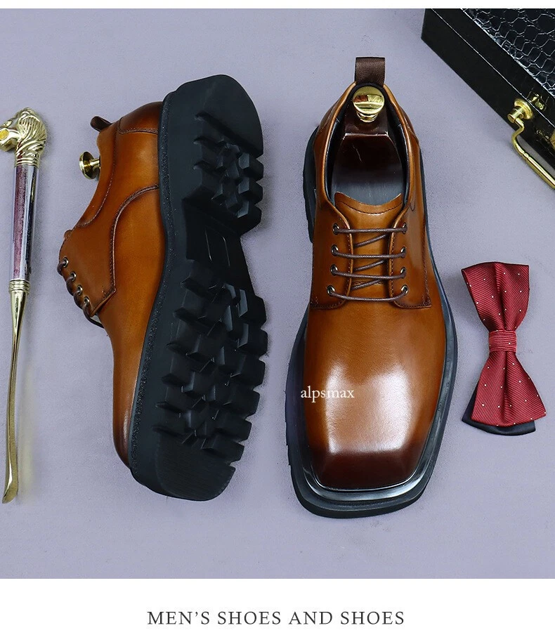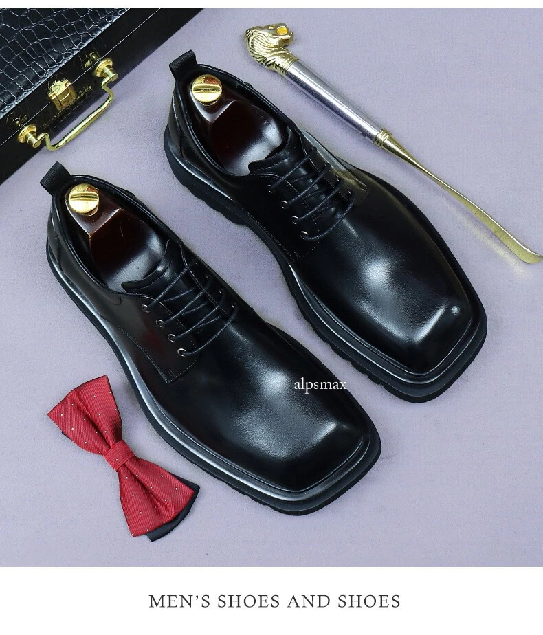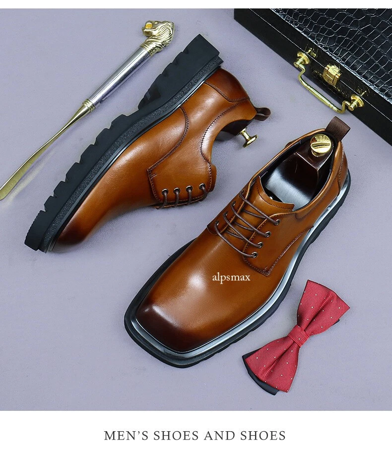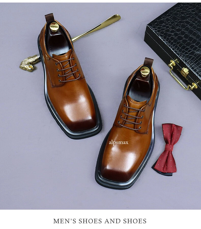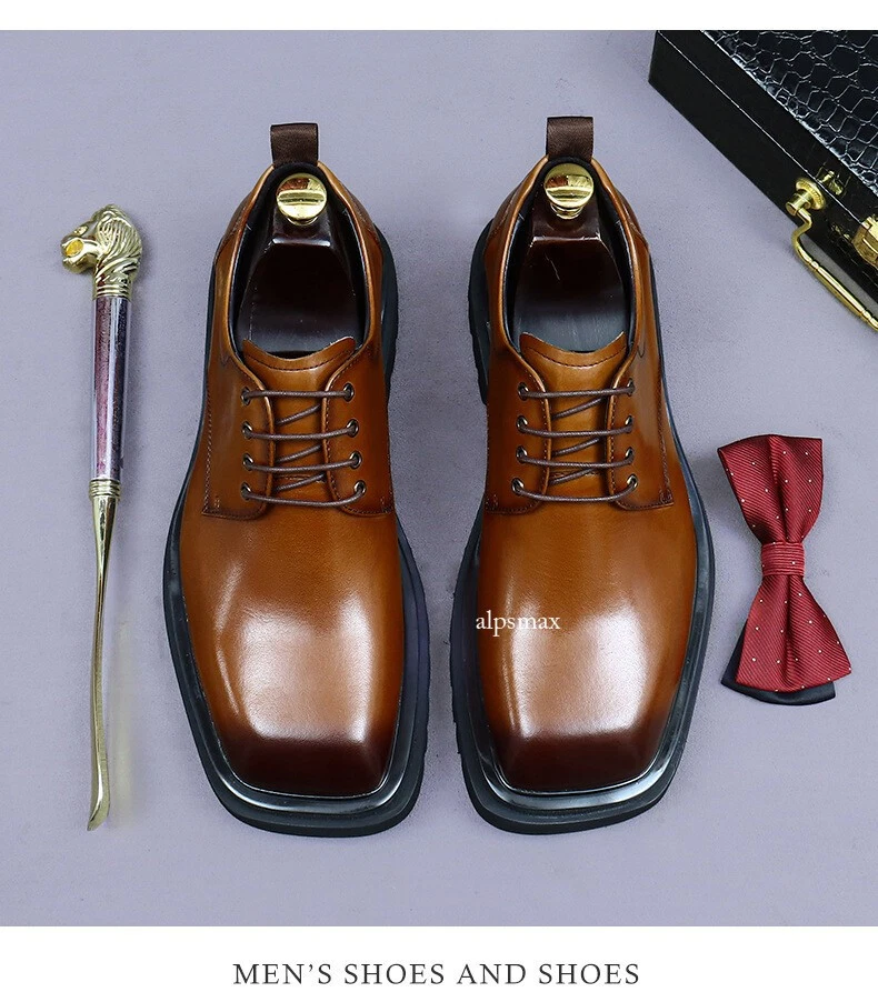 Men's Genuine Leather British Style Casual Shoes Formal Wedding Square Toe Shoes