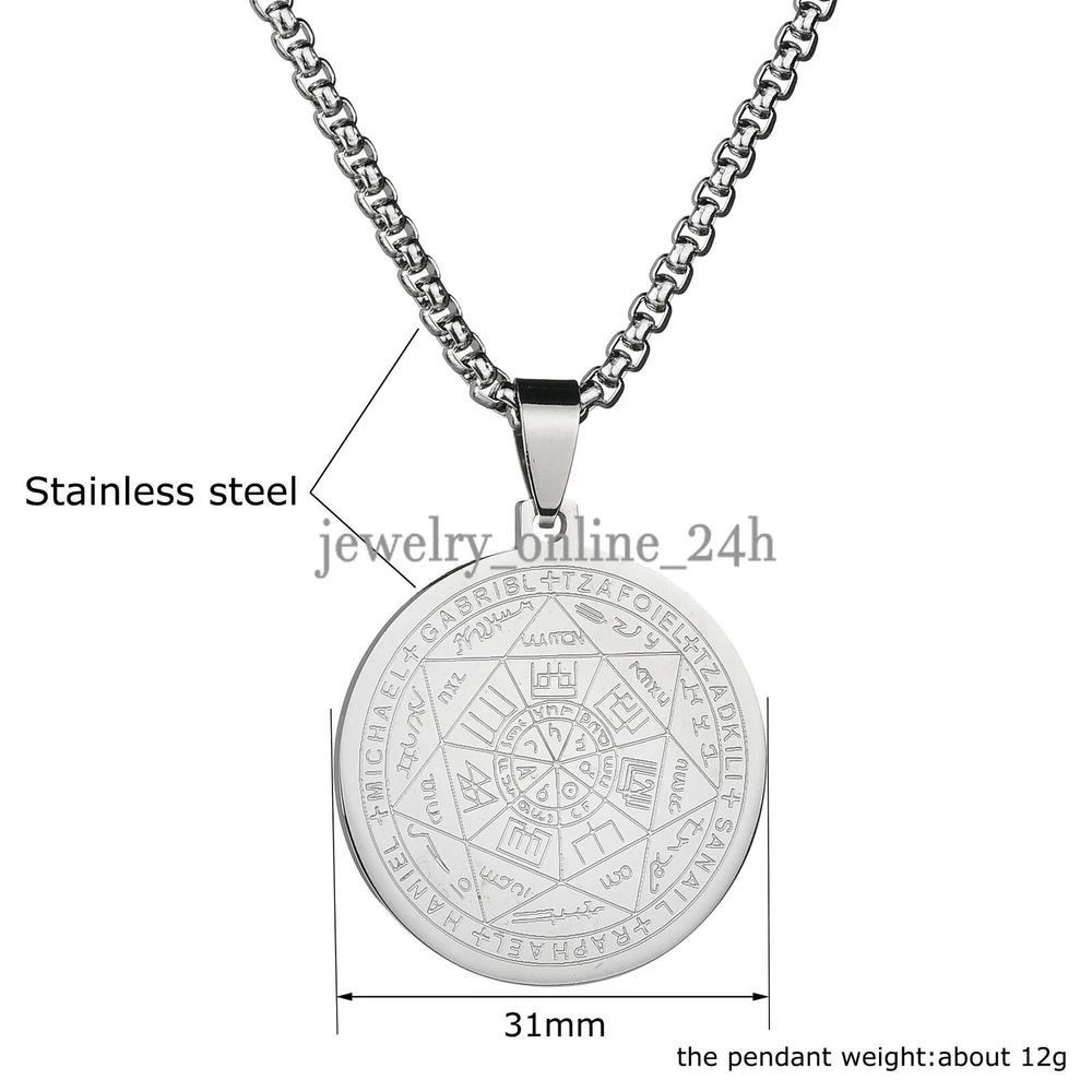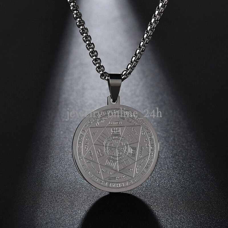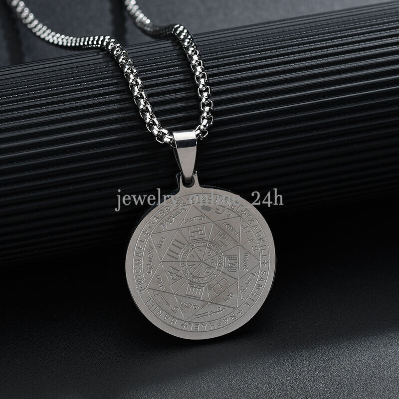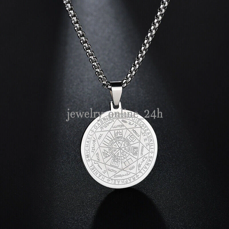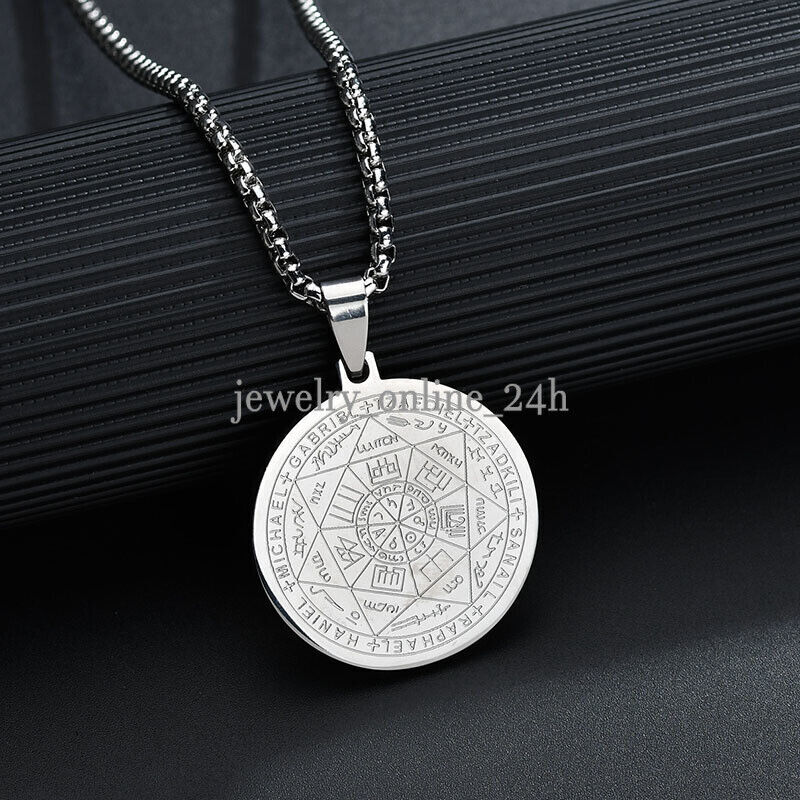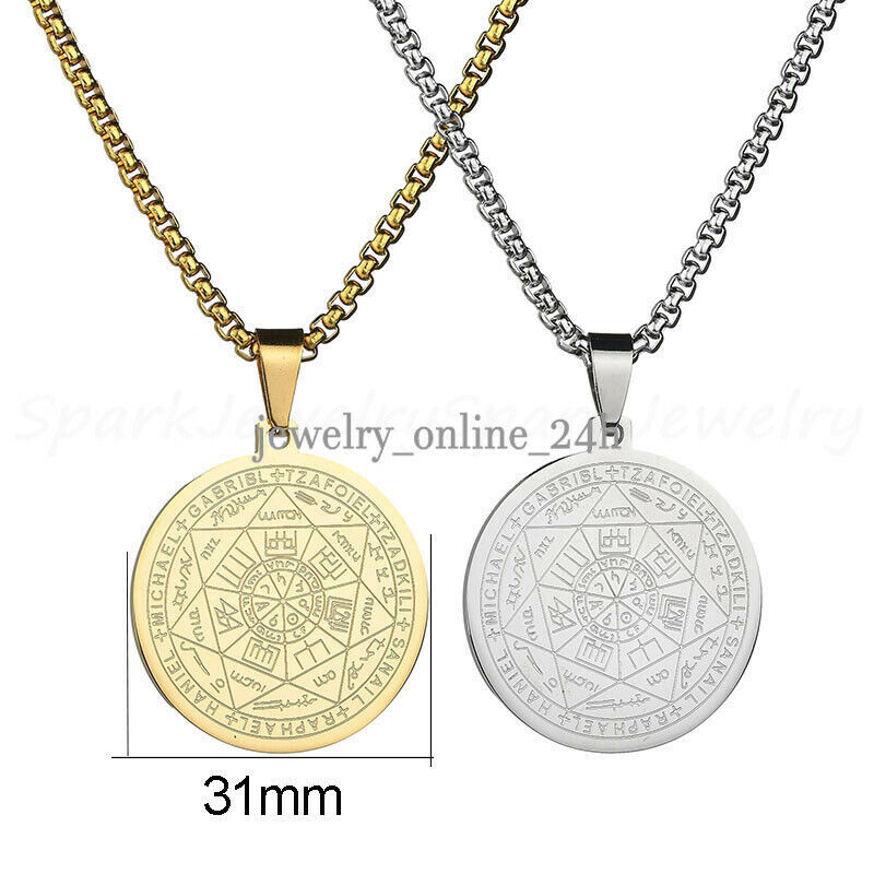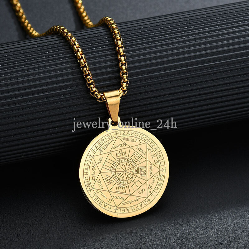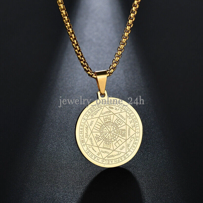 Mens Gold Steel Seven Archangels Seal Pendant Necklace