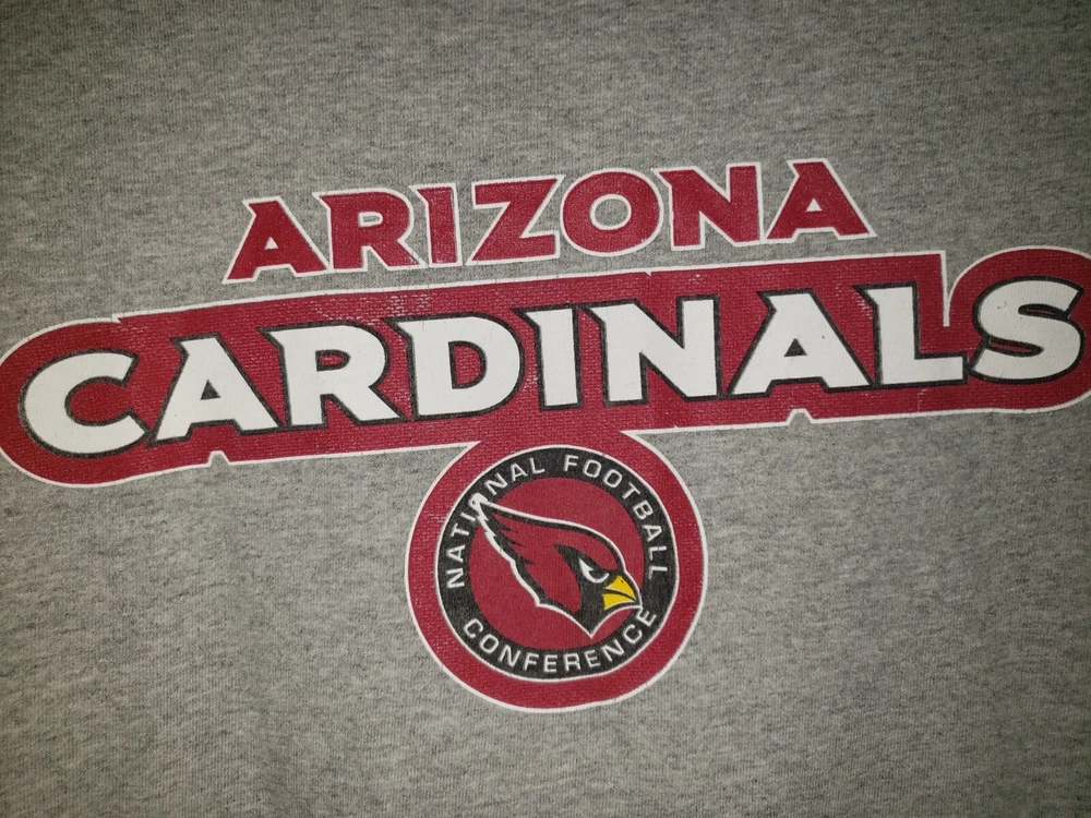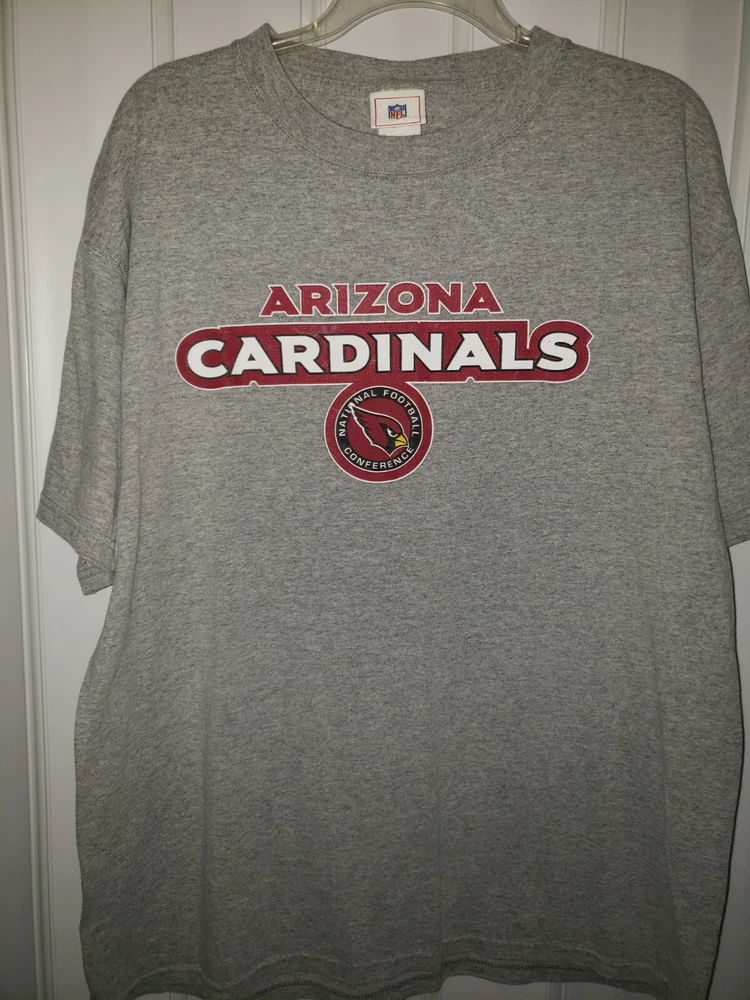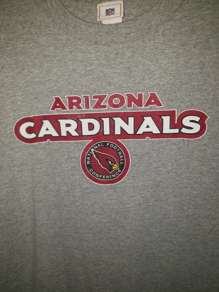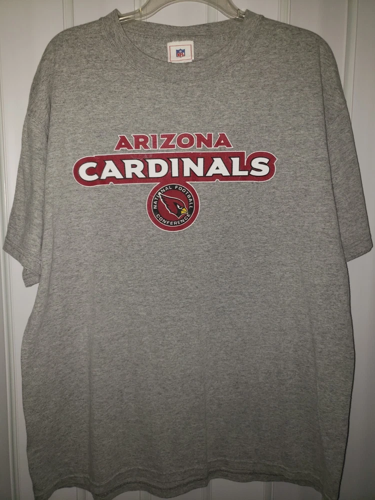 Mens graphic Nfl Arizona Cardinals gray t shirt size large ( tag faded, see measurements ) Shirt is in good condition. No tears or stains. A little fading in the graphics * see pictures Measurements 22 inches armpit to armpit 28 inches collar to bottom Will ship by usps upon receipt of payment All offers will be considered