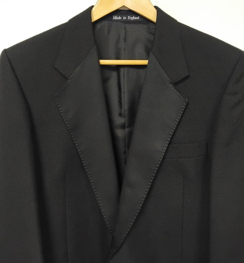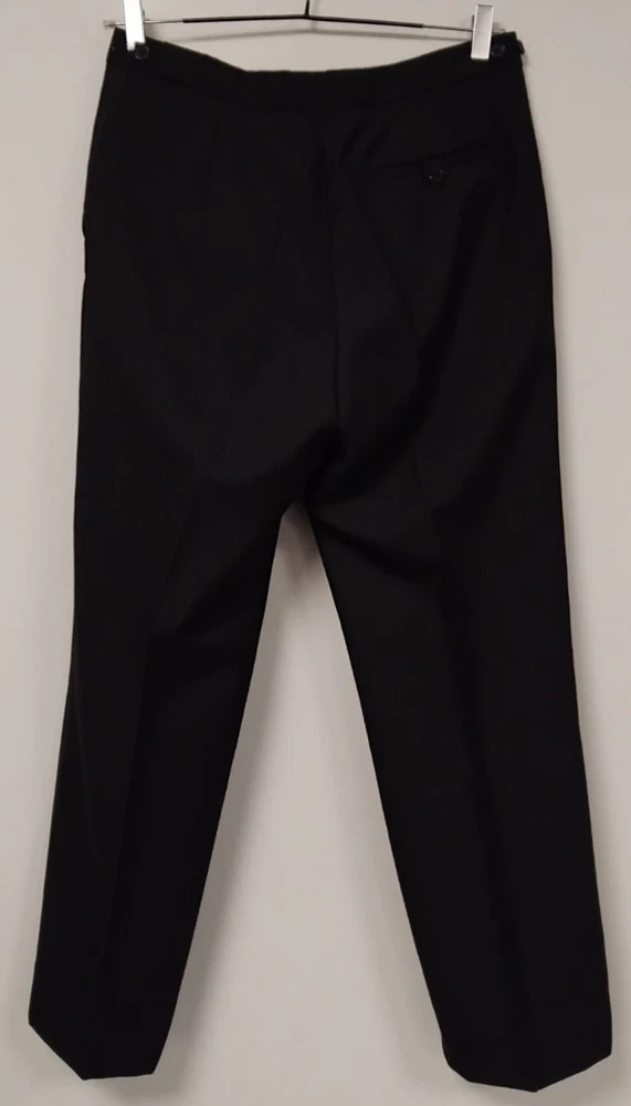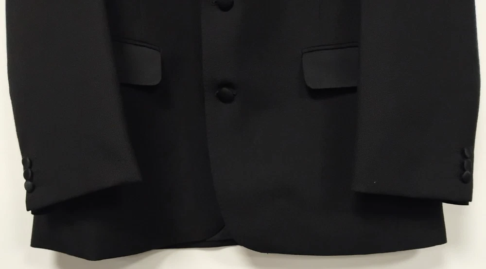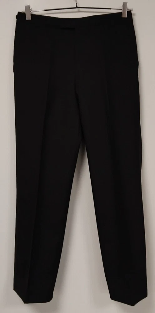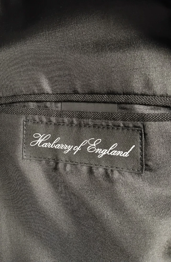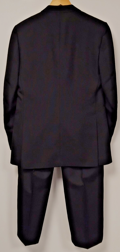 Material: Polyester, Wool Jacket Vent Style: Double-Vented Leg Style: Tapered Colour: Black Type: Suit Jacket Sleeve Button Style: Three-Button Jacket/Coat Length: Regular Occasion: Business, Formal, Party/Cocktail, Wedding Country/Region of Manufacture: United Kingdom Vintage: No Theme: Classic, Designer, Wedding Fit: Regular Style: 2 Piece Handmade: No Lining Material: Polyester Pattern: No Pattern Department: Men Season: Autumn, Spring, Summer, Winter Number of Pieces: 2 Piece Jacket Lapel Style: Notch Chest Size: 40 Size Type: Regular Brand: Harbarry of England Front Type: Pleated Features: Elastic Waist, Inner Pockets Jacket Front Button Style: Two-Button Size: 40R Garment Care: Dry Clean Only Jacket Cut: Single-Breasted Personalise: No
