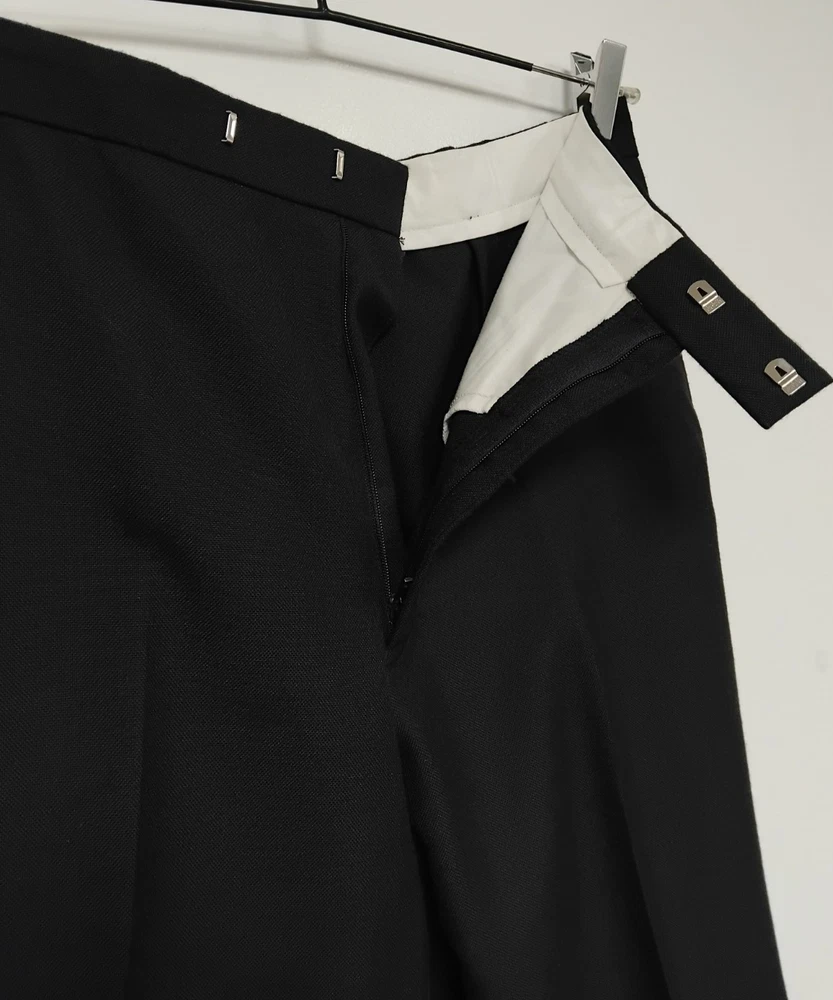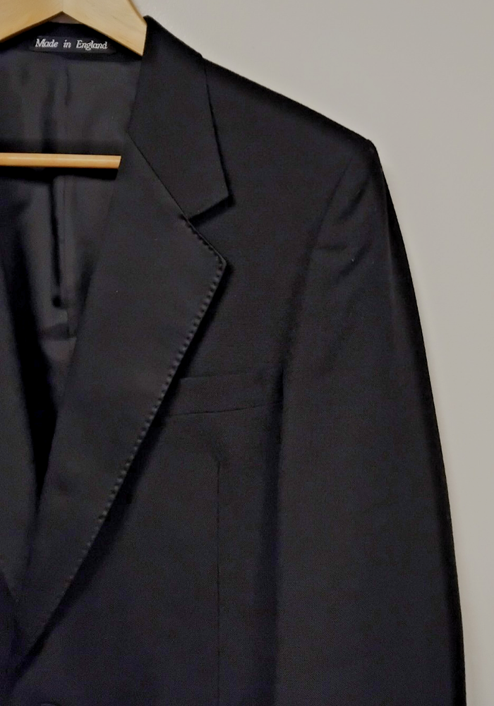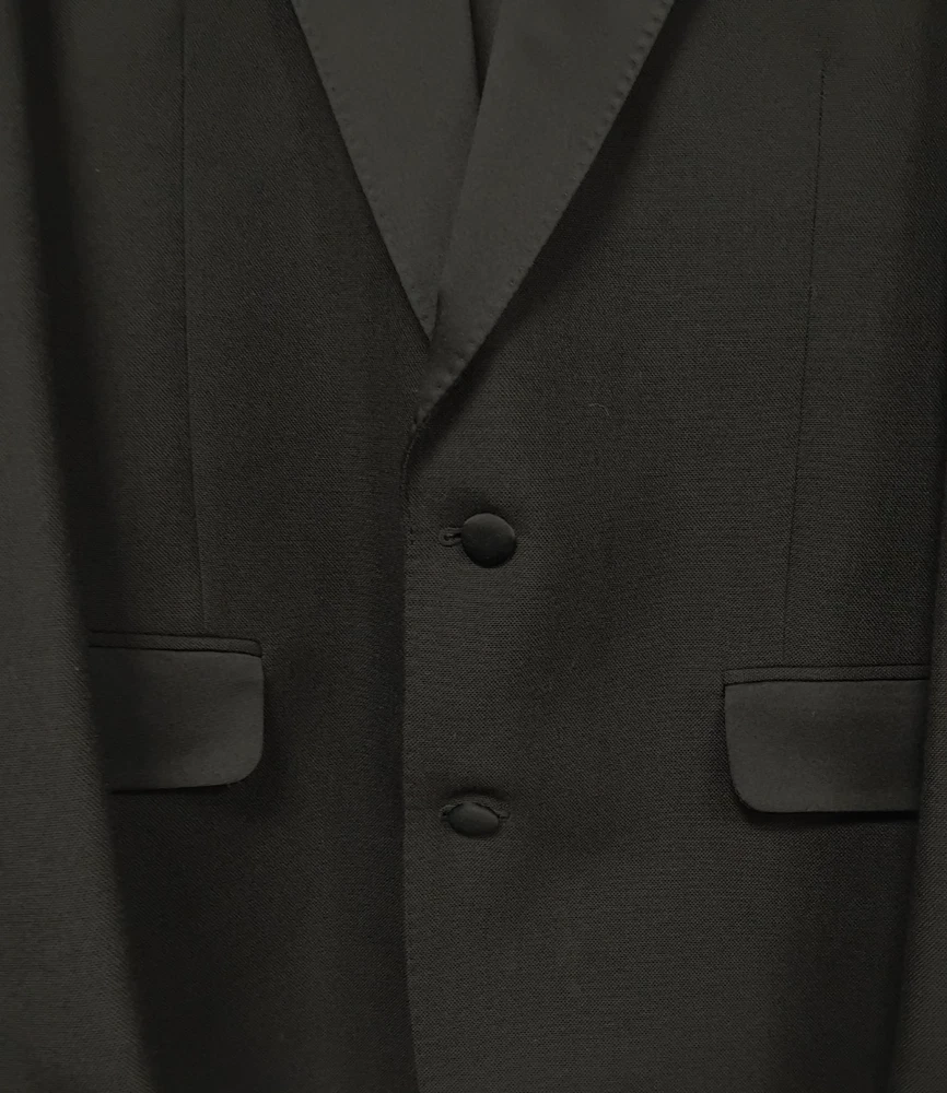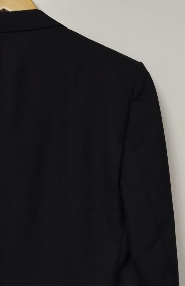 Material: Polyester, Wool Jacket Vent Style: Double-Vented Leg Style: Tapered Colour: Black Type: Suit Jacket Sleeve Button Style: Three-Button Jacket/Coat Length: Regular Occasion: Business, Formal, Party/Cocktail, Wedding Country/Region of Manufacture: United Kingdom Vintage: No Theme: Classic, Designer, Wedding Fit: Regular Style: 2 Piece Handmade: No Lining Material: Polyester Pattern: No Pattern Department: Men Season: Autumn, Spring, Summer, Winter Number of Pieces: 2 Piece Jacket Lapel Style: Notch Chest Size: 40 Size Type: Regular Brand: Harbarry of England Front Type: Pleated Features: Elastic Waist, Inner Pockets Jacket Front Button Style: Two-Button Size: 40R Garment Care: Dry Clean Only Jacket Cut: Single-Breasted Personalise: No