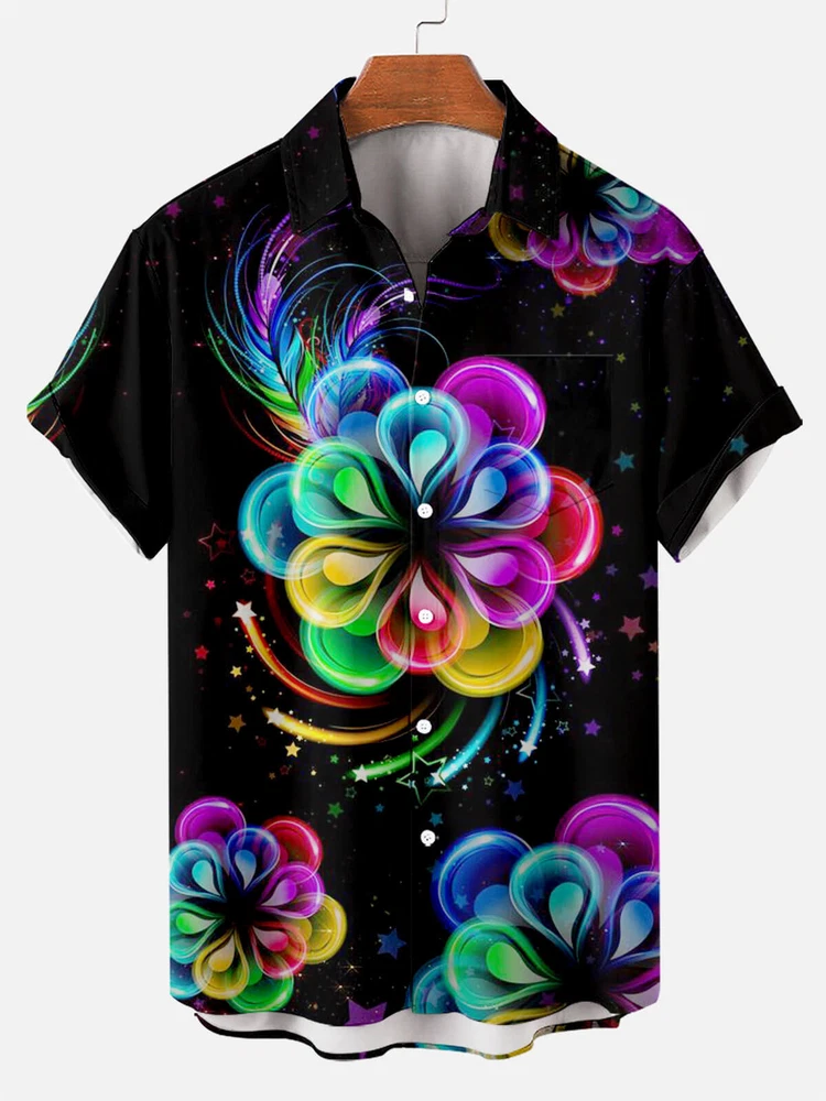 Mens Hawaiian Floral Colorblock Print Short Sleeve Shirt
