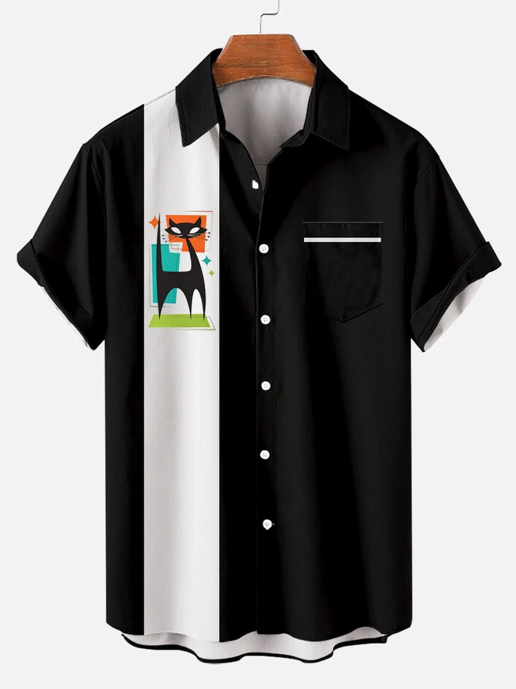 Mens Hawaiian Kitten Color Block Short Sleeve Shirt