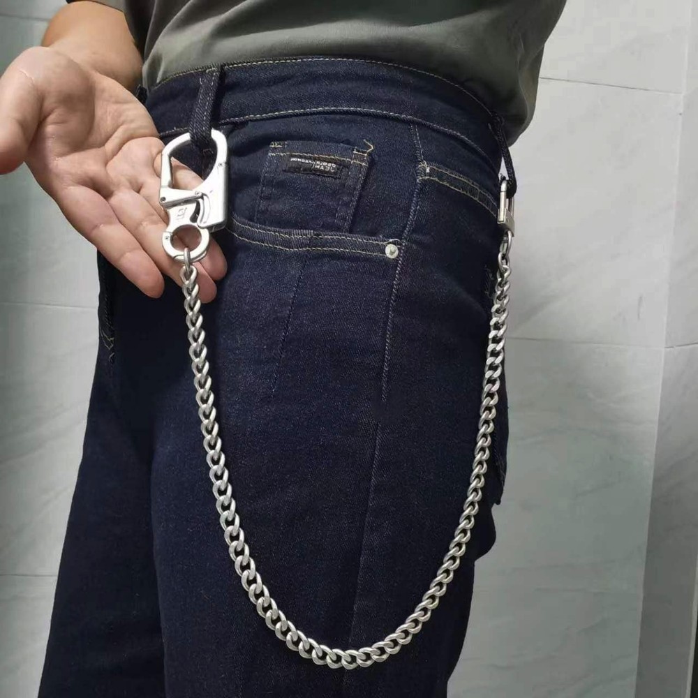This is a stylish keychain with chain, the keychain on the taper nails made of super hard tungsten steel, durable, widely suitable for different outdoor activities and daily use CAR WINDOW BREAKER: The carabiner can be removed from the wallet chain and used separately. The spikes on the carabiner are made of tungsten steel spikes, which are hard and strong enough to easily break a one-story car window. This feature allows you to use it to escape in dangerous situations. DOUBLE LOCK DESIGN: The carabiner wallet chain has a double lock design mechanism, the lock can only be unlocked when both sides of the switch are pressed at the same time, which can effectively prevent the loss of your belongings. We own the exclusive design patent of this wallet chain. MATERIALS: The chain is made of high-gloss polished and high-quality plated steel chain, assembled with alloy clasp, the whole chain is about 24.5in long, weighing about 5.8oz(165g). MULTIPURPOSE: It can also be used as a key chain, and also a common men's jeans chain, pocket chain, belt chain, heavy duty biker wallet chain in life. GUARANTEED SERVICE:Our primary goal is to satisfy our customers. We offer 12 months of after-sales service and 30 days of no-reason returns. If you have a problem while using, we will solve the problem for you within 24 hours.