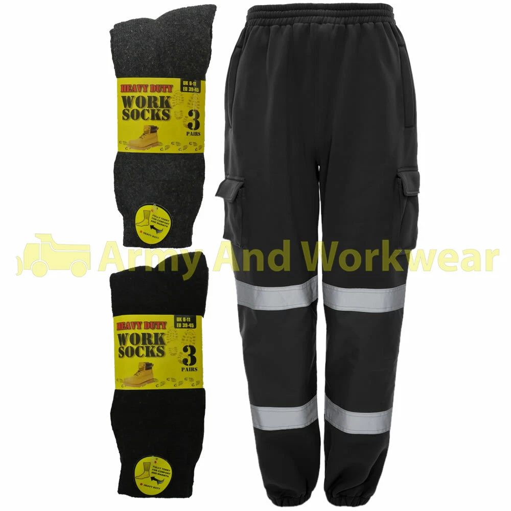 Mens High Visibility Jogging Bottoms + FREE SOCKS COLOURS Orange - GO/RT 3279 Rail Spec, EN471:2003 + A1:2007 Class 1 Yellow - EN471:2003 + A1:2007 Class 1 Black - Corporate/security colours SPEC - HI VIZ COLOURS Quality work jogging pants EC type CE approved EN471:2003 + A1:2007 Class 1 Retro reflective tape Two zipped hand warmer pockets One back pocket with Velcro flap One side phone pocket with Velcro flap One side Combat leg pocket with Velcro flap Thick elasticated waist & bottom hem Reinforced oxford fabric on knee area Fleece back sweatshirt fabric Adjustable draw cord waist 100% Polyester Condition: Brand New Machine washable Enhances your safety at nights and in low visibility situations SPEC - SECURITY COLOURS Quality work jogging pants Retro reflective tape Two zipped hand warmer pockets One back pocket with Velcro flap One side phone pocket with Velcro flap One side Combat leg pocket with Velcro flap Thick elasticated waist & bottom hem Reinforced oxford fabric on knee area Fleece back sweatshirt fabric Reinforced oxford fabric on knee area Adjustable draw cord waist 100% Polyester Condition: Brand New Machine washable Enhances your safety at nights and in low visibility situations SIZE HV Cuffed Joggers at Army and workwear SIZE WAIST INSIDE LEG LENGTH S 30 -34 30 M 32 -36 30 L 34 -38 30 XL 36 -40 30 2XL 38 -42 31 3XL 40 -44 31 High Visibility Jogging Bottoms + FREE SOCKS Orange - GO/RT 3279 Rail Spec, EN471:2003 + A1:2007 Class 1 Yellow - EN471:2003 + A1:2007 Class 1 Black - Corporate/security colours EN471:2003 + A1:2007 Class 1 One back pocket with Velcro flap One side phone pocket with Velcro flap One side Combat leg pocket with Velcro flap Thick elasticated waist & bottom hem Reinforced oxford fabric on Fleece back sweatshirt fabric Enhances your safety at nights and in low visibility situations One back pocket with Velcro flap One side phone pocket with Velcro flap One side Combat leg pocket with Velcro flap Thick elasticated waist & bottom hem Reinforced oxford fabric on Fleece back sweatshirt fabric Reinforced oxford fabric on Enhances your safety at nights and in low visibility situations HV Cuffed J