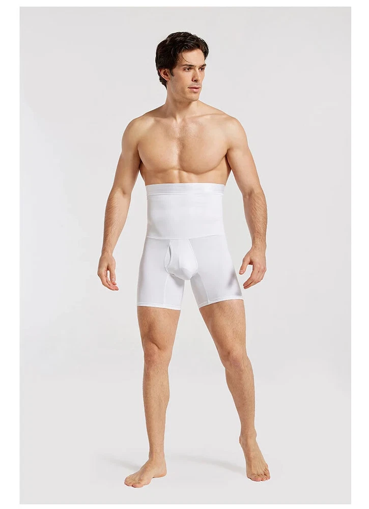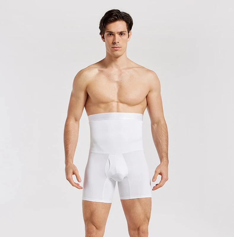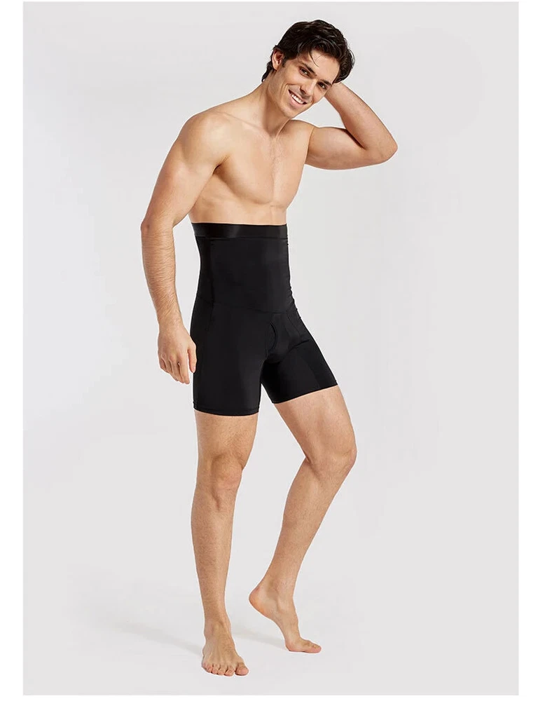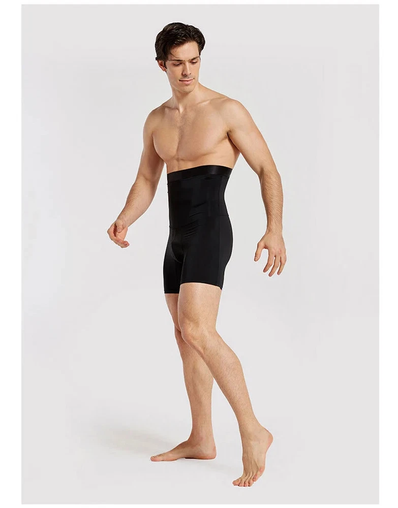 Men's Black High-Waist Leather Pants for Body Shaping & Waist Control