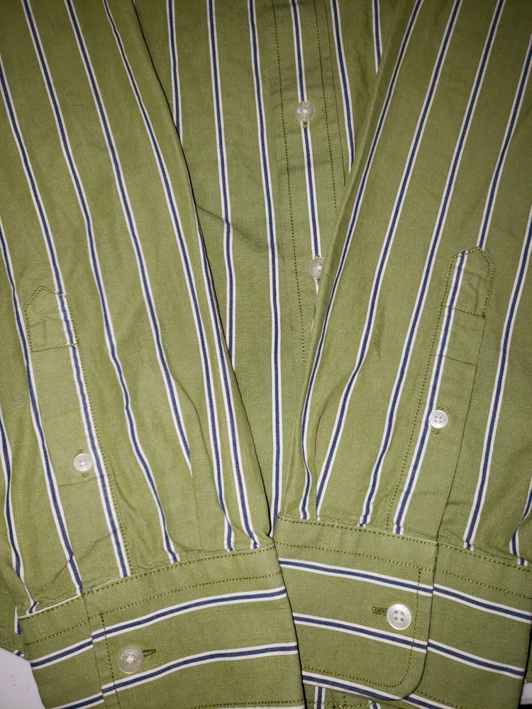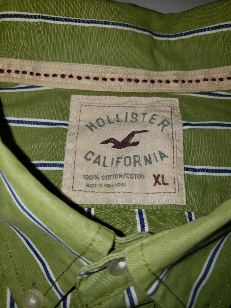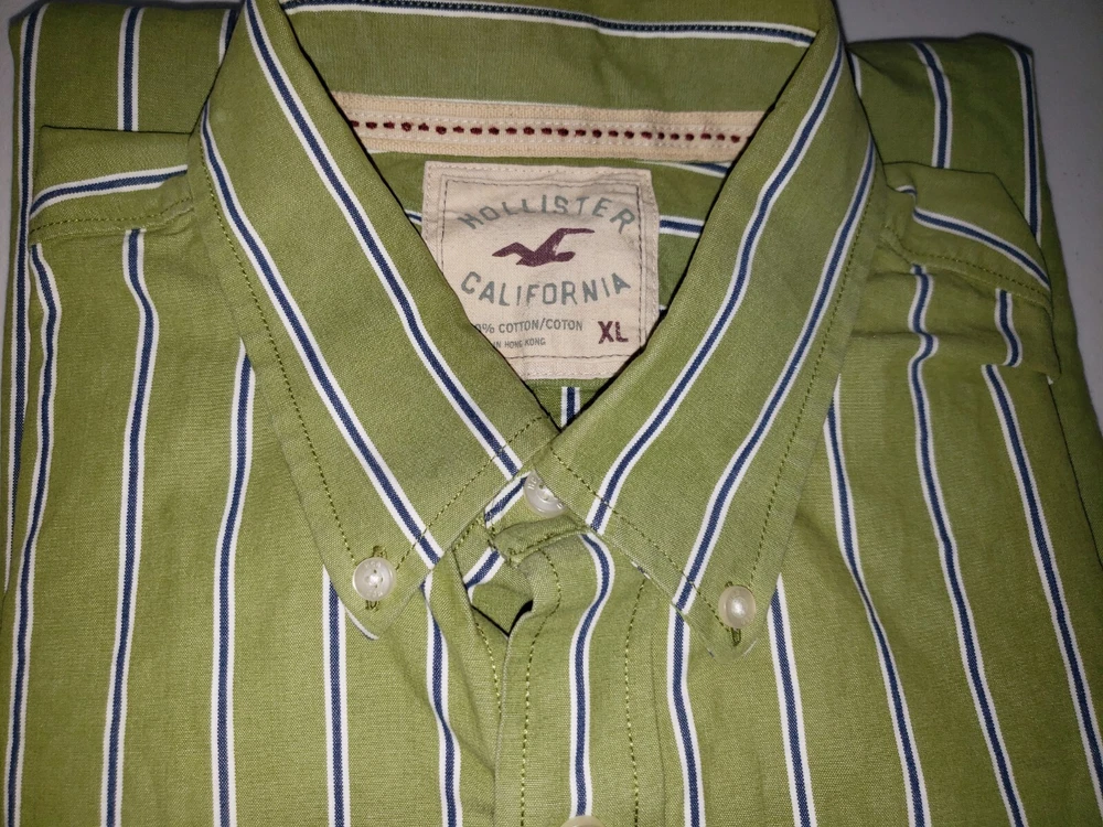 This Hollister shirt is perfect for any casual occasion. The green and blue striped pattern gives it a classic look, while the embroidered accents add a touch of sophistication. The long sleeves and collared neckline make it suitable for all seasons, and the button closure ensures a comfortable fit. Made of soft and durable cotton knit fabric, this shirt is both stylish and practical. The XL size and regular fit make it a great choice for men, and the pockets add convenience. Whether you're dressing up or down, this shirt is a versatile addition to any wardrobe. Measurements 22 inches armpit to armpit 29 inches collar to bottom Will ship by usps upon receipt of payment, usually the same day or next All offers will be considered