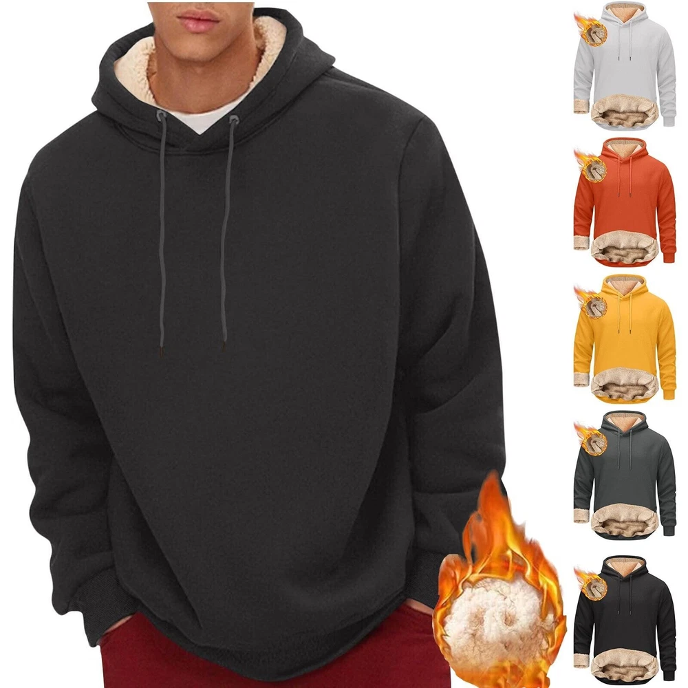 Mens Hoodie Thick Sherpa Lined Thermal Winter Windproof Warm Fleece Sweatshirt