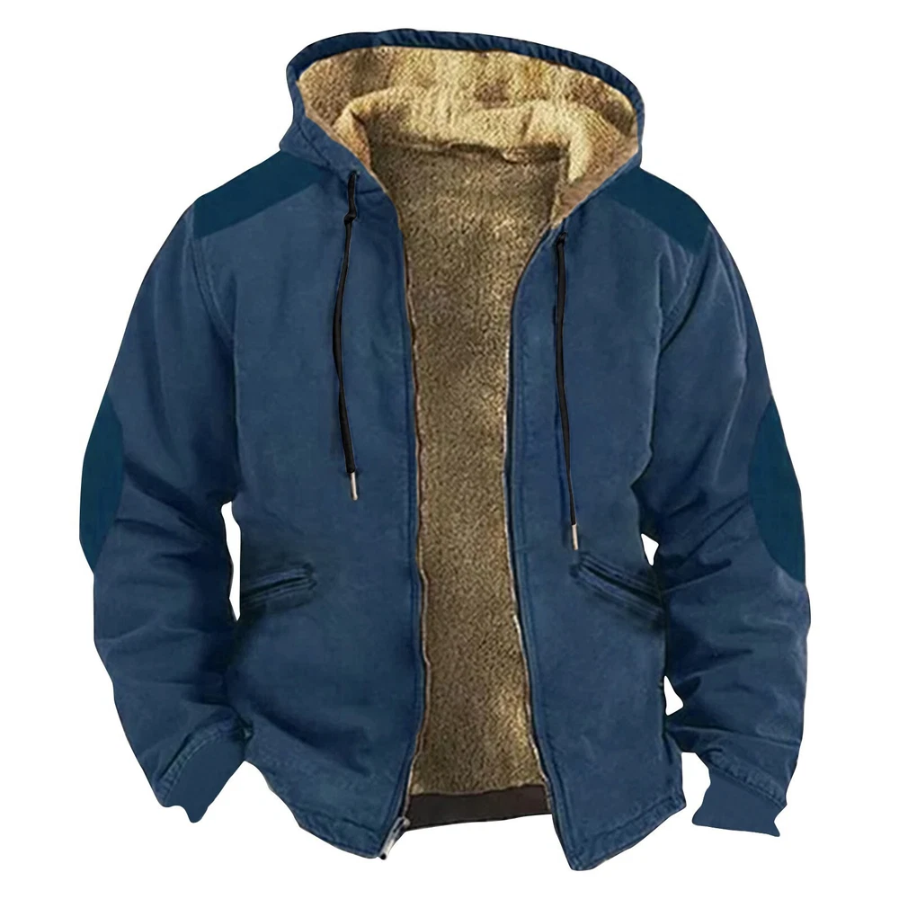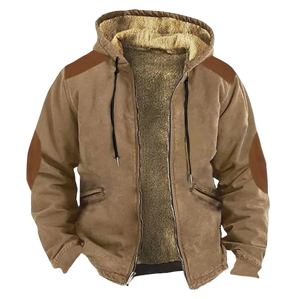 Mens Hoodies Jacket Insert Cotton Zipper Pocket Print Retro Trend Casual Sweater